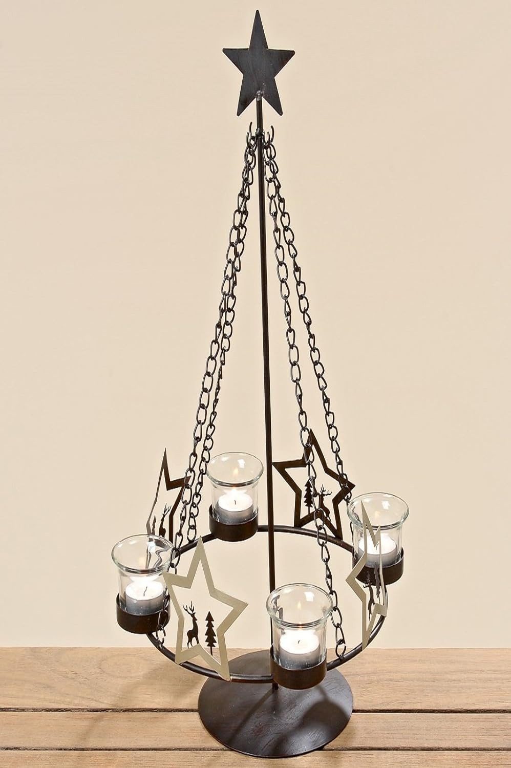 Hübscher Adventsbaum als Teelichthalter aus Eisen, pulverbeschichtet, braun, 5 tlg, mit 4 Teelichtgläser
