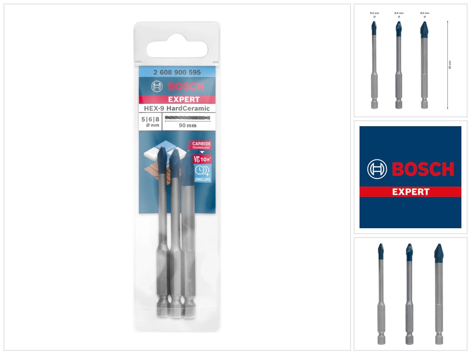 - 3x Bosch EXPERT HardCeramic HEX-9 Bohrer 90 mm ( 5,0 / 6,0 / 8,0 mm )