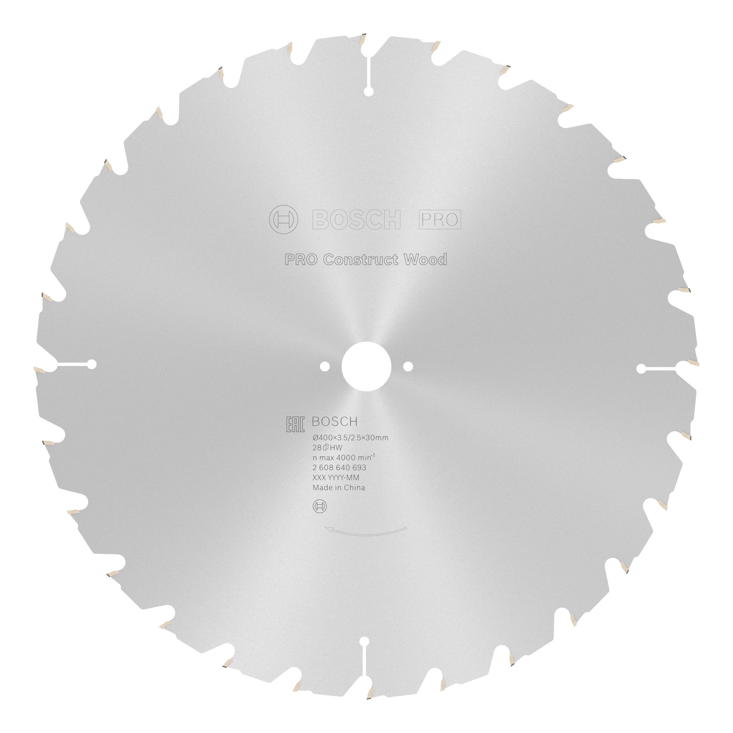 Bosch Zubehör Pro Construct Wood Kreissägeblatt, 400 x 3,5 x 30 mm, 28 Zähne, für Netz-Tischkreissägen