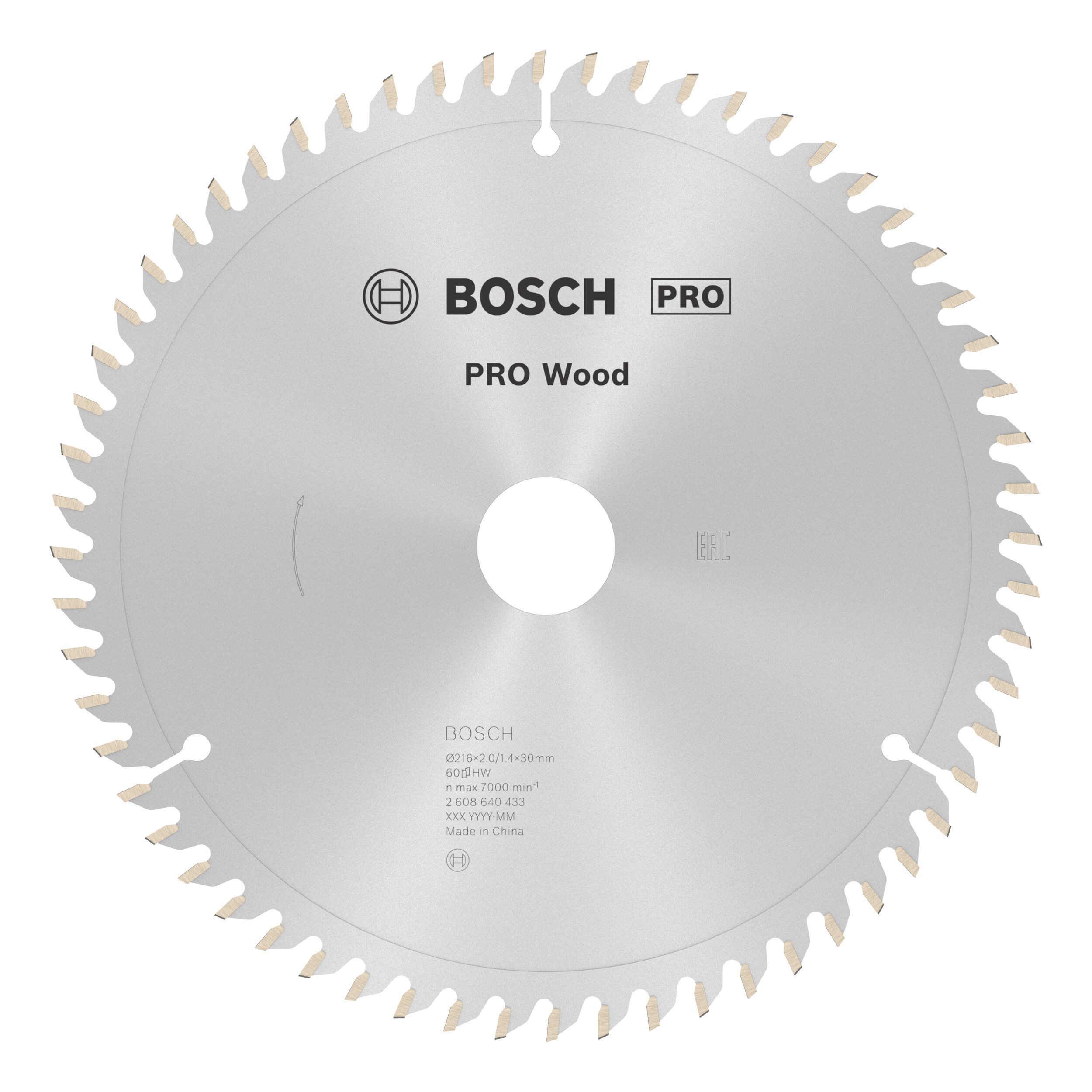 Bosch Zubehör Pro Wood Kreissägeblatt, 216 x 2 x 30 mm, 60 Zähne, für Netz-Kapp- und Gehrungssägen