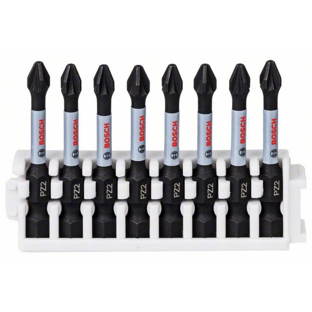 Das Impact Control Schrauberbit ist äußerst robust, ideal für schwere Arbeiten geeignet und hält selbst dem großen Drehmoment von Schlagschraubern stand. Die spezielle Torsionszone verleiht den Bits extreme Haltbarkeit für Dauerbelastung. S2-modifizierter Stahl und optimierter Wärmebehandlungsprozess verleihen höchste Haltbarkeit für Bestleistungen, selbst bei umfangreichen Montagen und schweren Industriearbeiten. Es besitzt einen Außensechskantschaft der Größe 1/4 Zoll zur Verwendung mit Bohrschraubern, Schraubendrehern und besonders mit Schlagschraubern. Das Schrauberbit ist Teil des Bosch Pick and Click-Systems, das individuell zusammenstellbare Zubehörsets für absolut flexible Bit-Sortimente ermöglicht. Einrasteinschübe sichern einzeln gekaufte Bitpacks für eine individuelle Sammlung und den einfachen Austausch von alten Bitpacks. Die Bits werden in einem Kunststoffhalter geliefert, der einfach in die Pick and Click Leerboxen M und L einrastet und individuell zusammengestellte Bitsets ermöglicht. Das 36-teilige Pick and Click Impact Control Schrauberbitset enthält auch Steckschlüssel sowie den Impact Control-Universalhalter mit Standardmagnet und den Impact Control-Universal Holder Quick Release. Diese Halter sind ideal für besonders guten Halt der Bits bei allgemeinen Schraubarbeiten mit Elektrowerkzeugen geeignet. Die Quick-Change-Funktion ermöglicht hingegen schnelle und einfache Bitwechsel und einen kraftschlüssigen Sitz des Bits. Länge mm: 50.
