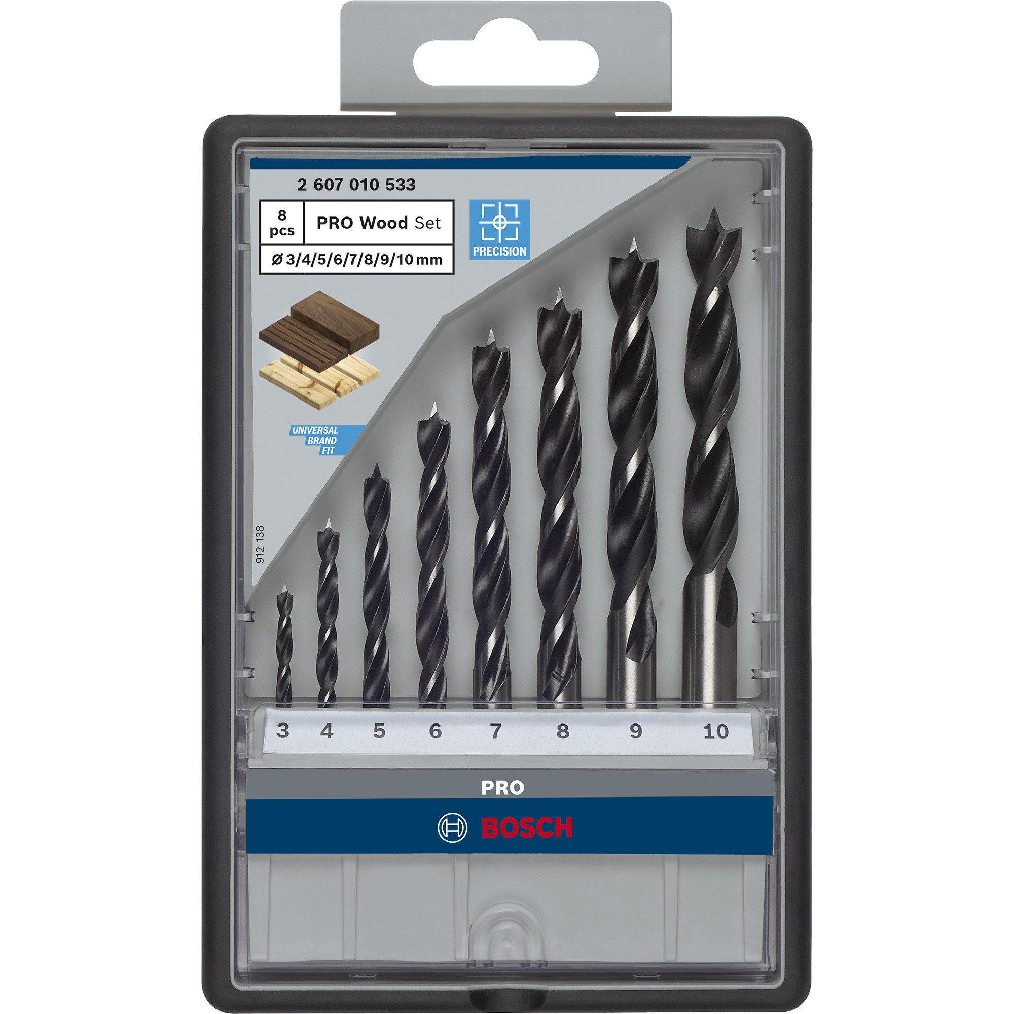 Das Bosch PRO Wood Holz-Spiralbohrer-Set eignet sich für präzise Bohrungen in Holz. Es kann ebenso für Durchgangs und Sacklochbohrungen verwendet werden. Der Holzbohrer Robust Line ist ein sehr scharfer Bohrer mit Zentrierspitze für eine exakte Positionierung des Bohrlochs. Die präzisionsgeschliffenen Vorschneider erzeugen ausrissfreie Löcher. Die beiden Nuten verhindern dabei, dass Bohrmehl das Loch verstopft, und transportieren es ab. Diese Bohrer sind für Weich- und Hartholz geeignet, und haben einen zylindrischen Schaft.