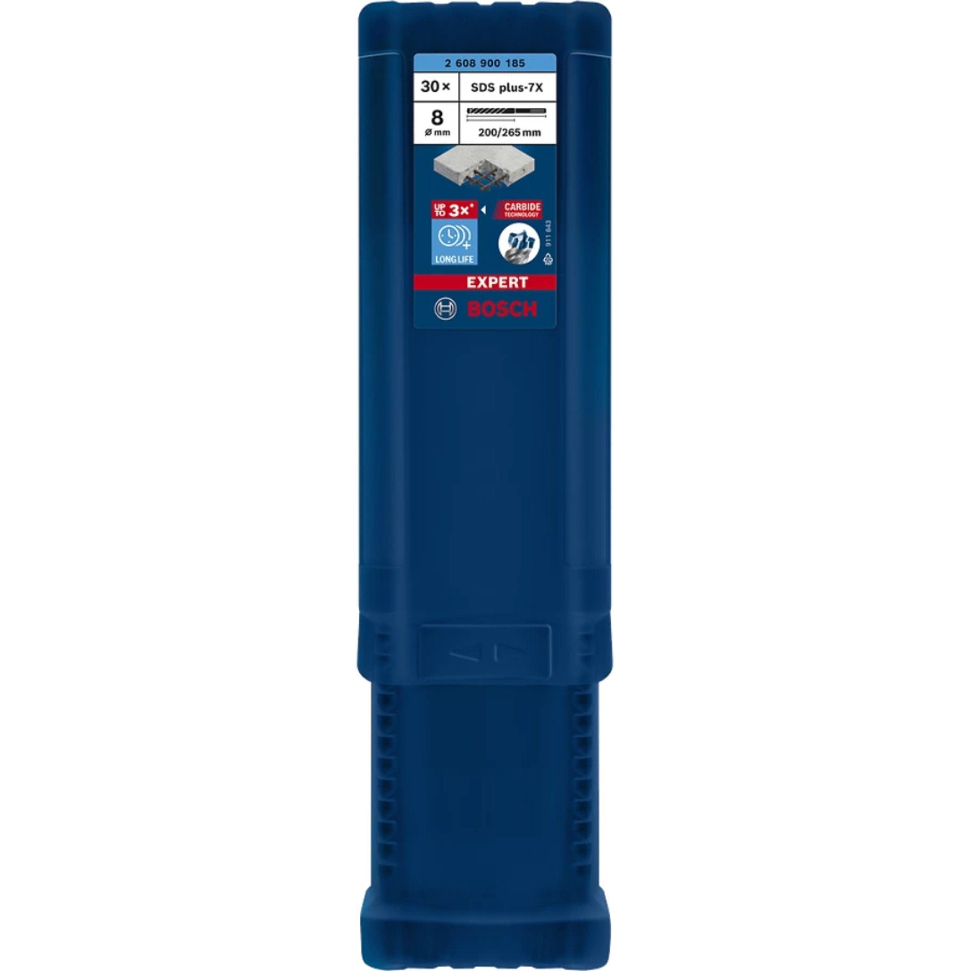 Arbeitslänge 200mm Der Expert SDS-plus-7X Bohrer 2608900185 von Bosch bietet eine hervorragende Nutzungsdauer beim Bohren in Beton und Stahlbeton. Der Vollhartmetallkopf auf dem Expert SDS plus-7X ist ein fortschrittlicher 4-Schneider, der aus einem einzigen Stück des härtesten Metalls besteht. Er verklemmt nicht und zeigt keine Schwächen beim Hammerbohren. Die durchgängige Verteilung der Bohrkraft lässt keinen Leistungsverlust entstehen, was die Gesamtlebensdauer erhöht. Außerdem gewährleistet das spiralige Design mit den breiten Kanälen den effektiven Bohrmehlabtransport und vermindert so den Verschleiß am Bohrer. Der SDS-plus-7X Bohrer ist für den Einsatz mit Bohrhämmern mit SDS-plus System in Mauerwerk, Beton und armierten Beton vorgesehen.