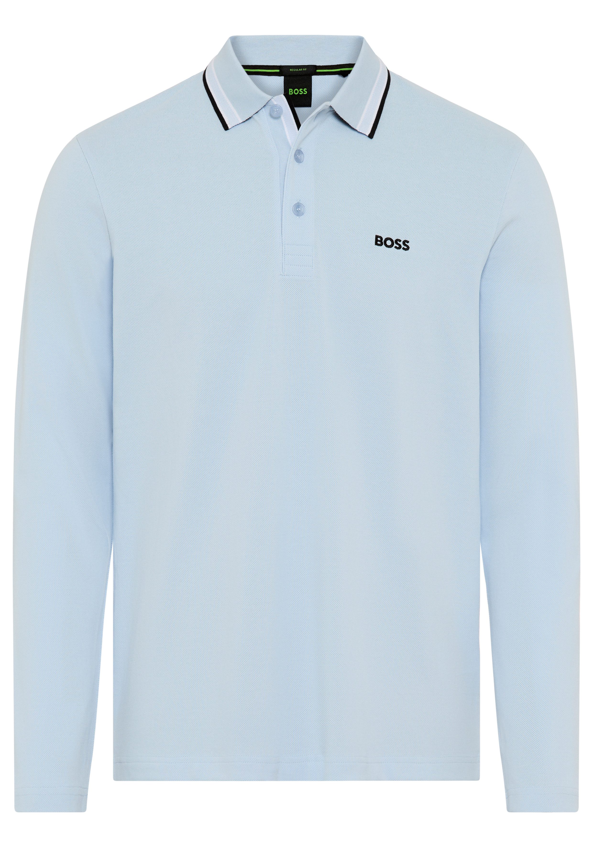 Schau dir das Langarm-Poloshirt »Plisy« von BOSS GREEN mal genauer an. Die Logostickerei sorgt für eine individuelle und trendige Note. Der Polokragen bietet einen Sonnenschutz für den Nacken, wenn er beim Tennis- oder Golfspielen aufgeklappt getragen wird. Dieses Shirt hat einen V-Ausschnitt und ist hüftlang sowie basic geschnitten, wodurch dein Oberkörper locker umspielt wird.