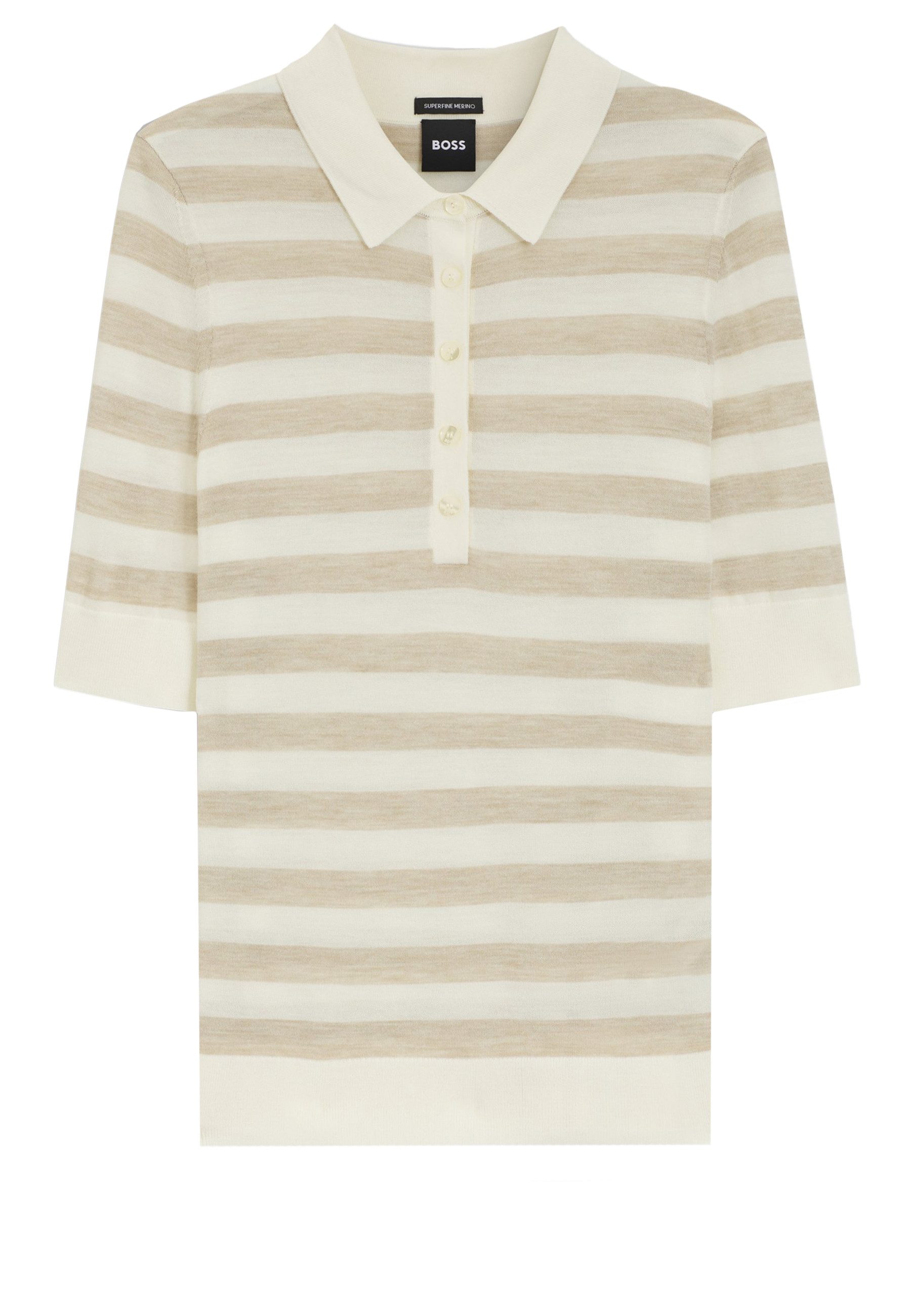 Ein Klassiker neu definiert: Das Poloshirt Fidenka von BOSS BlackFreust du dich auch immer über Kleidungsstücke, die sowohl stilvoll als auch unglaublich bequem sind? Dann wirst du das Poloshirt Fidenka von BOSS Black lieben! Dieses Shirt ist nicht nur ein echter Hingucker, sondern überzeugt auch durch seine hochwertige Verarbeitung und Funktionalität.Perfekt für jeden AnlassOb für das Büro, einen entspannten Tag im Park oder einen Abend mit Freunden – das Poloshirt Fidenka ist dein idealer Begleiter. Dank des zeitlosen melierten Musters und des klassischen Polokragens kombinierst du es mühelos mit verschiedenen Outfits. Der Regular Fit sorgt dabei für eine angenehme Passform, die genug Bewegungsfreiheit bietet, ohne zu weit zu sein.Tragekomfort, der sich sehen lassen kannDas Shirt ist aus 100% Schurwolle gefertigt, die nicht nur für ihre Langlebigkeit bekannt ist, sondern auch für ihre atmungsaktiven Eigenschaften. Schwitzen? Kein Thema mehr! Die Schurwolle leitet Feuchtigkeit effektiv von der Haut weg und hilft, unangenehme Gerüche zu vermeiden. Zudem bleibt das Poloshirt auch nach häufigem Tragen formbeständig.Stilvoll und funktionalDie kurzen Ärmel des Shirts bieten dir zusätzlichen Komfort an wärmeren Tagen und machen es zu einem perfekten Kleidungsstück für die Übergangszeit sowie den Sommer. Der feine Stoff und die sorgfältige Verarbeitung spiegeln die hohe Qualität wider, für die BOSS Black bekannt ist. 100% hochwertige Schurwolle für optimalen Tragekomfort Atmungsaktiv und feuchtigkeitsregulierend Elegantes, meliertes Muster mit klassischem Polokragen Ideal für Casual und semi-formelle Anlässe Formbeständig und pflegeleichtVerwöhne dich selbst mit einem Stück Luxus im Alltag – das Poloshirt Fidenka von BOSS Black wartet auf dich!