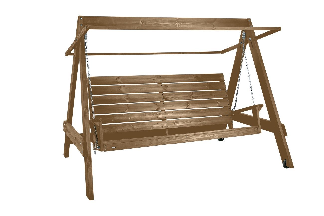 Imprägnierte Oberfläche schützt das Holz und sorgt für langlebigen Outdoor-Einsatz Integrierte Räder erleichtern das flexible Umstellen im Garten Vier stabile Beine gewährleisten einen sicheren Stand auf verschiedenen Untergründen Charakteristische Maserung macht jedes Stück einzigartig und wohnlich Übersichtlicher Bausatz ermöglicht eine unkomplizierte Selbstmontage Entspanntes Gartenerlebnis mit modernem Design Genieße Deine Auszeit im Freien und finde einen Rückzugsort, der Natürlichkeit mit moderner Formgebung verbindet. Die harmonische Verbindung aus klaren Linien und warmem Braunton unterstützt eine entspannte Atmosphäre in Deinem Garten. Ob für ein ruhiges Lesestündchen oder gemeinsame Momente mit Freunden – das großzügige Sitzmaß bietet Raum für Lieblingsmenschen und persönliche Wohlfühlmomente. Das Design unterstreicht einen skandinavisch inspirierten Lebensstil und fügt sich stilvoll in unterschiedlichste Gartenkonzepte ein. Hochwertige Materialien und nachhaltiger Komfort Kiefernholz steht im Mittelpunkt und bringt mit seiner individuellen Maserung lebendige Natürlichkeit in Deinen Außenbereich. Die sorgfältige Imprägnierung sorgt dafür, dass Du lange Freude an der Schaukelliege hast. Das robuste Metallgestell und die solide Bauweise bieten ein angenehmes Sitzgefühl und zuverlässige Stabilität. Sollten Verunreinigungen auftreten, lässt sich die Oberfläche ganz leicht mit einem feuchten Tuch reinigen. Kiefer bleibt als natürlicher Rohstoff stets einzigartig und kann Astlöcher aufweisen, die jedes Exemplar besonders machen. Die Montage gelingt dank einer klaren Anleitung schnell und unkompliziert, sodass Du Deine neue Gartenschaukel bald genießen kannst.