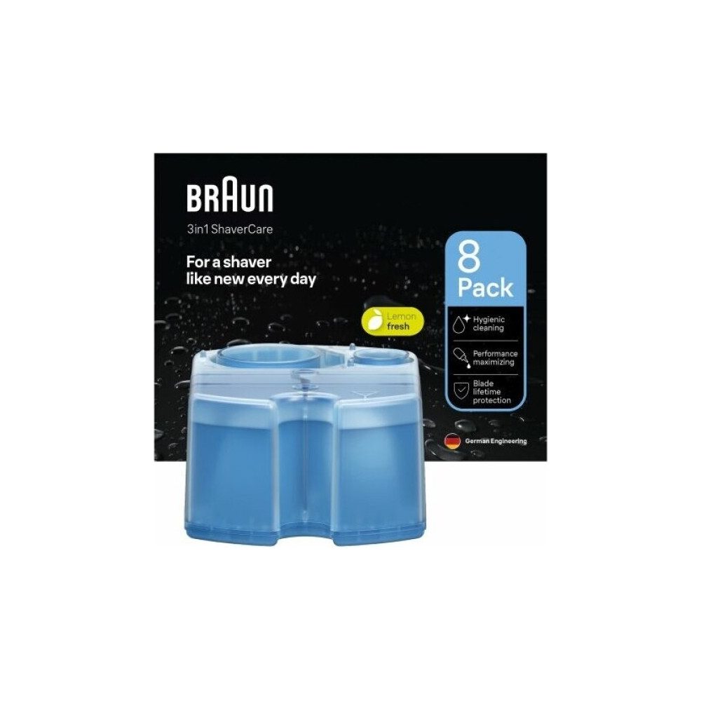 | Ausstattung | 8 Nachfüllkartuschen im Pack Für Braun Rasierer-Reinigungsstation Effektive Reinigung für Rasierer Einfacher Austausch der Kartuschen Optimale Pflege für lange Lebensdauer |