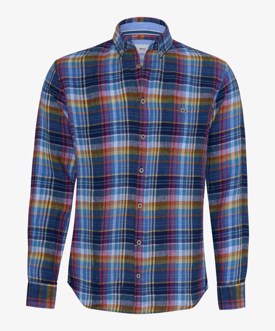 Das Herrenhemd im Style DANIEL ist eine frische Interpretation des klassischen Sommerlooks. Mit seinem Button-Down-Kragen und der praktischen aufgesetzten Brusttasche verbindet es traditionelle Elemente mit einem modernen Twist. Der markante Multicolored Check verleiht dem Hemd eine sportive und gleichzeitig lässige Ausstrahlung, Das macht das Langarmhemd zu einem kombinationsfreudigen Begleiter. Aus 100% reinem Leinen gefertigt, profitiert dieses Hemd von allen Vorteilen dieser Naturfaser. Das Langarmhemd ist atmungsaktiv, kühlend, strapazierfähig und gefällt mit authentischer Textur. Damit empfiehlt sich dieses Leinenhemd als Frischekick in Ihrem Outfit.Form: * Herrenhemd * Langarm * Button Down-Kragen * Aufgesetzte Brusttasche * Durchgehende Knopfleiste * Modern Fit * Leicht taillierte Silhouette Material: * Lässige Leinen-Qualität * Aus reinem Leinen gefertigt * Leinen: feste, feuchtigkeitsaufnehmende Faser mit kühlendem Effekt * Absolut hautsympathisch * Atmungsaktiv * Strapazierfähig * Pflegeleicht Details/Verarbeitung: * Sportives Karomuster * Modernes Label Maße: * Rückenlänge bei Größe M (50): 76 cm * Unser Model trägt Größe M (50) und ist 188 cm groß