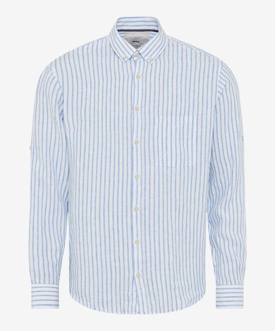 Das Hemd Dirk von BRAX verbindet klassische Details mit sommerlicher Leichtigkeit. Die leicht taillierte Passform, der markante Button Down-Kragen und die praktische Brusttasche verleihen dem Langarmhemd einen modernen, sportiven Look. Das feine Streifenmuster sorgt für eine frische und klare Optik, die sich vielseitig kombinieren lässt – ob lässig mit hochgekrempelten Ärmeln oder klassisch getragen.
