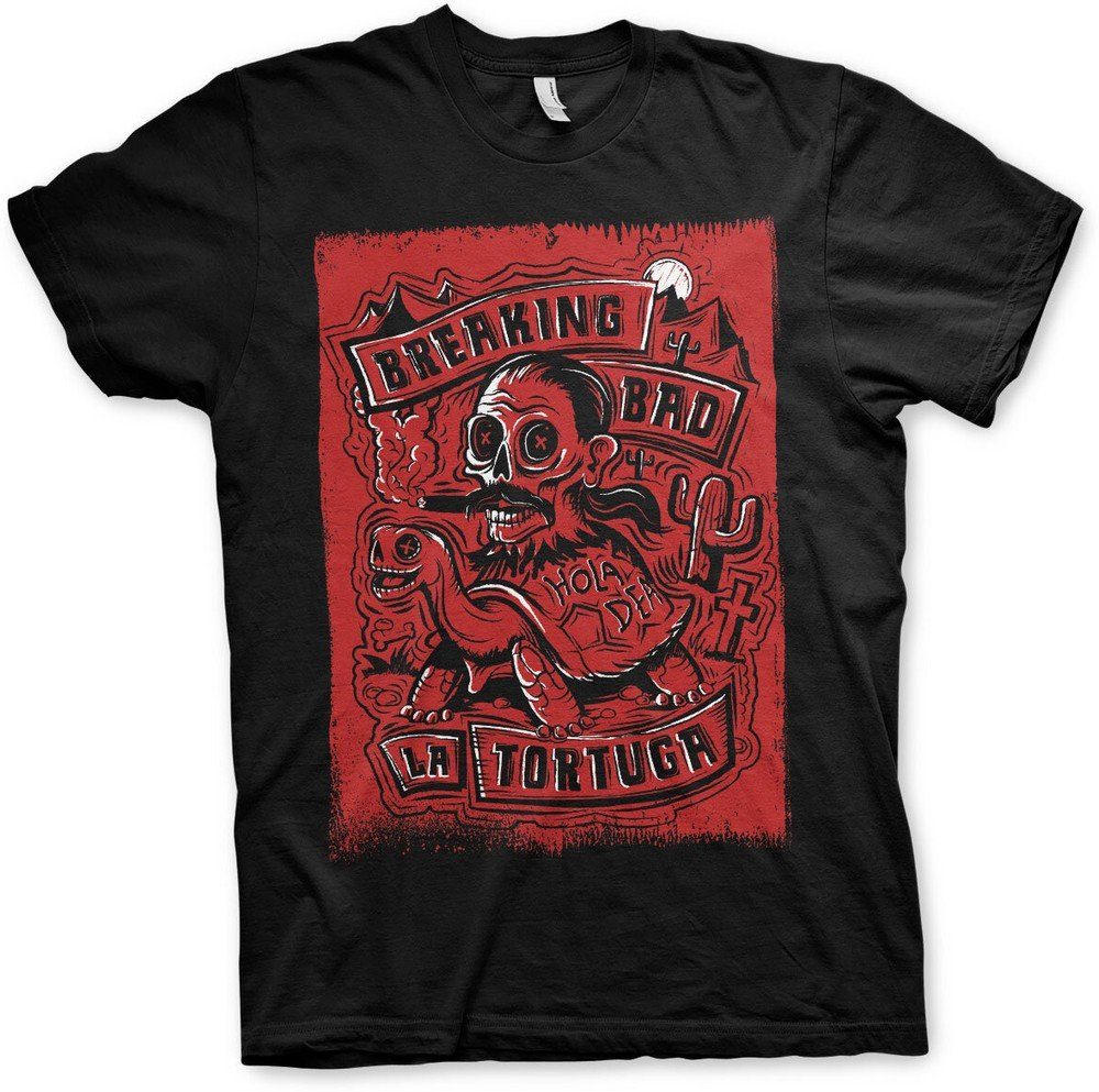 Das Breaking Bad La Tortuga Hola Death T-Shirt in Schwarz ist ein Must-Have für alle Fans der beliebten TV-Serie. Das einzigartige Design mit dem ikonischen Motiv der Schildkröte aus der Serie ist ein echter Blickfang und lässt jeden Fan sofort erkennen, worum es geht. Das hochwertige Material sorgt zudem für einen angenehmen Tragekomfort. Mit diesem T-Shirt kannst du deine Leidenschaft für Breaking Bad auf stylische Weise zum Ausdruck bringen. Egal ob beim gemütlichen Serienmarathon zu Hause oder beim Treffen mit Freunden – mit diesem Shirt liegst du immer im Trend. Das coole Design und die hochwertige Verarbeitung machen es zu einem echten Lieblingsstück in deinem Kleiderschrank. Hol dir jetzt das Breaking Bad La Tortuga Hola Death T-Shirt in Schwarz und zeige allen, dass du ein echter Fan der Serie bist. Das Shirt eignet sich auch perfekt als Geschenk für andere Fans oder als Erinnerungsstück an die spannenden Abenteuer von Walter White und Co. Jetzt zugreifen und stylisch durch den Alltag gehen!