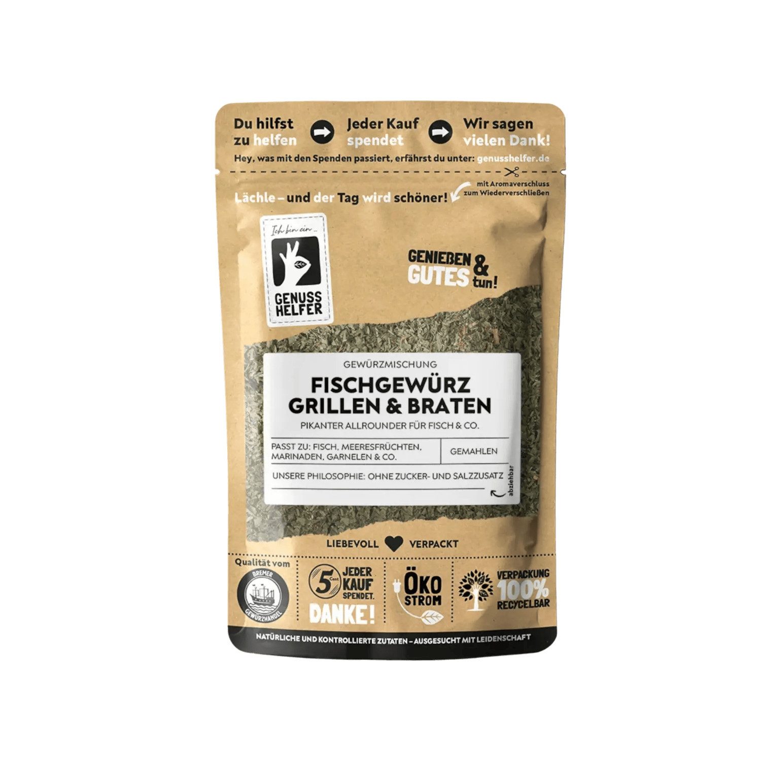 Für alle Landratten, die sich in der heimischen Kombüse mit Krebsen, Krabben, Fisch und Co. zuhause fühlen, haben wir mit unserem gemahlenen Fischgrill- und Bratgewürz das richtige Gewürz parat. Das Fischgewürz überzeugt durch sein intensiv-würziges Aroma, bei dem nicht nur Liebhaber erlesener Fischspezialitäten Lust auf maritime Schlemmereien bekommen. Durch die ausgewogene Zusammenstellung der einzelnen Kräuter und Gewürze kommt das intensive Aroma unseres Fischgrill- und Bratgewürz besonders gut zur Geltung. Mit Zutaten wie Petersilienblätter, Dillspitzen, Zitronenschalen, Schnittlauch, Paprika, Knoblauch und Pfeffer eignet sich die Sauce hervorragend zum Marinieren von Fisch oder als Basis für würzige Fischsaucen.