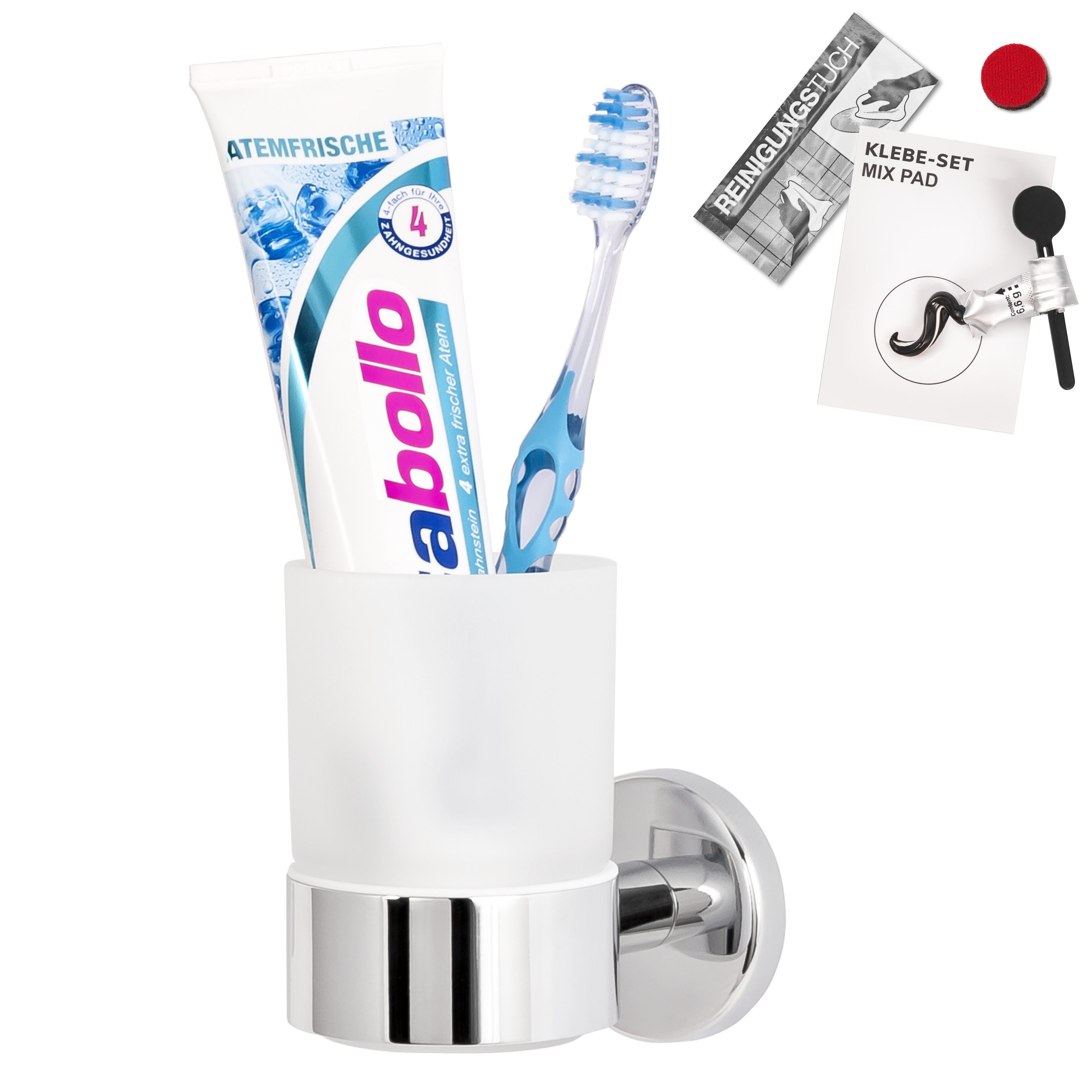 Glasbecherhalter, Zahnputzbecherhalter mit Wandhalterung inkl. Klebe-Set, hygienisch herausnehmbarer Glasbehälter