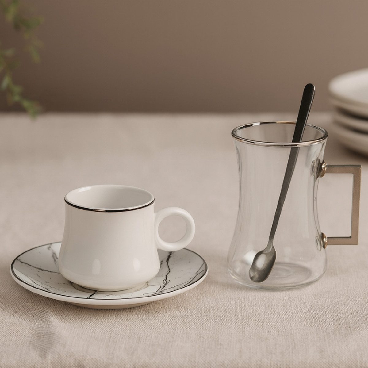 Das Set umfasst insgesamt 24 Teile und bietet alles, was Sie für eine gemütliche Tee- oder Espressorunde benötigen – ideal für den täglichen Gebrauch ebenso wie für besondere Anlässe.