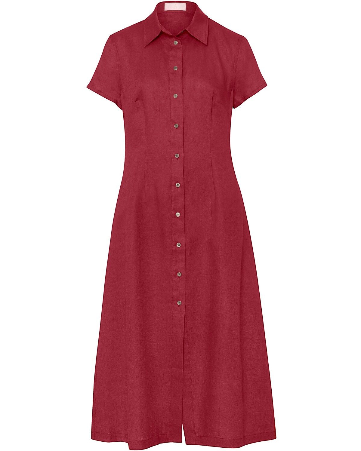 Das zeitlose Leinenkleid vereint klassischen Chic mit modernem Komfort. Mit seinem durchgeknöpften Design und dem eleganten Hemdblusenkragen strahlt es eine mühelose Eleganz aus, die sowohl für den Alltag als auch für besondere Anlässe geeignet ist. Die Perlmuttknöpfe setzen einen geschmackvollen Akzent und verleihen dem Kleid eine subtile Raffinesse. Die taillierte Silhouette betont die feminine Figur und sorgt gleichzeitig für einen angenehmen Tragekomfort. Der weite Rock bietet Bewegungsfreiheit und verleiht dem Kleid eine verspielte Note. Die kurzen Ärmel machen es ideal für wärmeres Wetter und ermöglichen vielseitige Kombinationsmöglichkeiten mit verschiedenen Accessoires. Hergestellt aus hochwertigem Leinen, zeichnet sich das Kleid durch seine atmungsaktiven Eigenschaften und Langlebigkeit aus. Es lässt sich mühelos in jede Garderobe integrieren und wird schnell zum Lieblingsstück für zahlreiche Gelegenheiten. Oberstoff: 100% Leinen