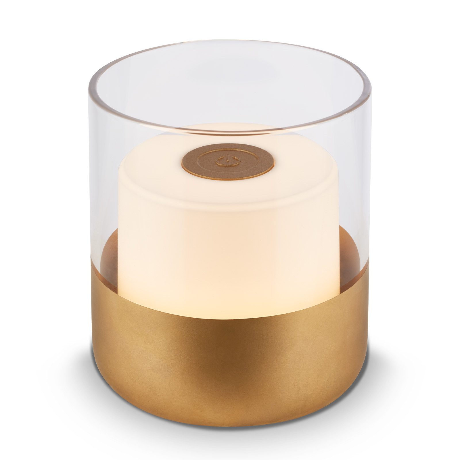 Diese elegante mini Tischleuchte bietet Ihnen eine mobile Lichtlösung für Ihr Zuhause. Mit einem integrierten Akku, der eine beeindruckende Laufzeit von bis zu 15 Stunden ermöglicht, können Sie diese Leuchte flexibel überall dort platzieren, wo Sie sie benötigen. Die Ladedauer beträgt nur 2,5 Stunden, sodass Sie schnell wieder von ihrem warmen Licht profitieren können. Das mitgelieferte Glas macht diese Akkulampe zu einem dekorativen Blickfang in Ihrem Wohnraum. Diese Mini Akku Lampe lässt sich in 3 verschiedenen Helligkeitsstufen (20%, 50%, 100%) per einfacher Berührung dimmen. Dadurch eignet sie sich ideal als mobiles Tischlicht, Dekolampe, Dekolicht, Nachtlicht für Kinder oder Mini Nachttischlampe ? ganz nach Ihren Bedürfnissen. Mit einer Lichtfarbe von 2700 Kelvin strahlt diese Leuchte ein angenehmes warmweißes Licht aus. Perfekt geeignet für gemütliche Grillabende am Gartentisch auf dem Balkon oder der Terrasse, aber auch als stimmungsvolles Licht in Wohnzimmer, Flur und Schlafzimmer. Die Schutzart IP44 bietet Schutz vor Spritzwasser und macht diese LED Tischlampe mit Batterie zu einem zuverlässigen Begleiter beim Camping, im Freien oder auf Terrasse und Balkon ? selbst wenn das Wetter mal nicht mitspielt. Das Aufladen erfolgt bequem per mitgeliefertem USB-C Kabel. Diese kabellose Lampe hat eine kompakte Größe von 90x100 mm (Durchmesser x Höhe) und passt problemlos in jeden Raum. Lassen Sie Ihr Zuhause mit dieser vielseitigen Mini Tischleuchte in neuem Licht erstrahlen.