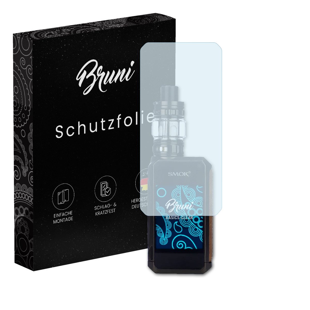 | Lieferumfang | 2 x Basics-Clear Folie kompatibel mit Smok G-Priv 4, inklusive mehrsprachiger, bebilderter Anleitung und Link zum Montagevideo, Bei Geräten mit mehreren Displays (z.B. Innen- und Außendisplay), ist für jedes Display eine Schutzfolie in der Verpackung enthalten. |