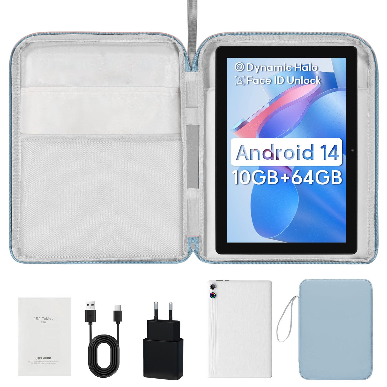 Android 14 Octa-Core 10 Zoll Tablet | 10 GB + 64 GB (erweiterbar auf 1 TB) | Bluetooth 5.3 WiFi 6 | Gesichtsentsperrung | Mit strapazierfähiger Tragetasche – geeignet für 10-11-Zoll-Tablets.
