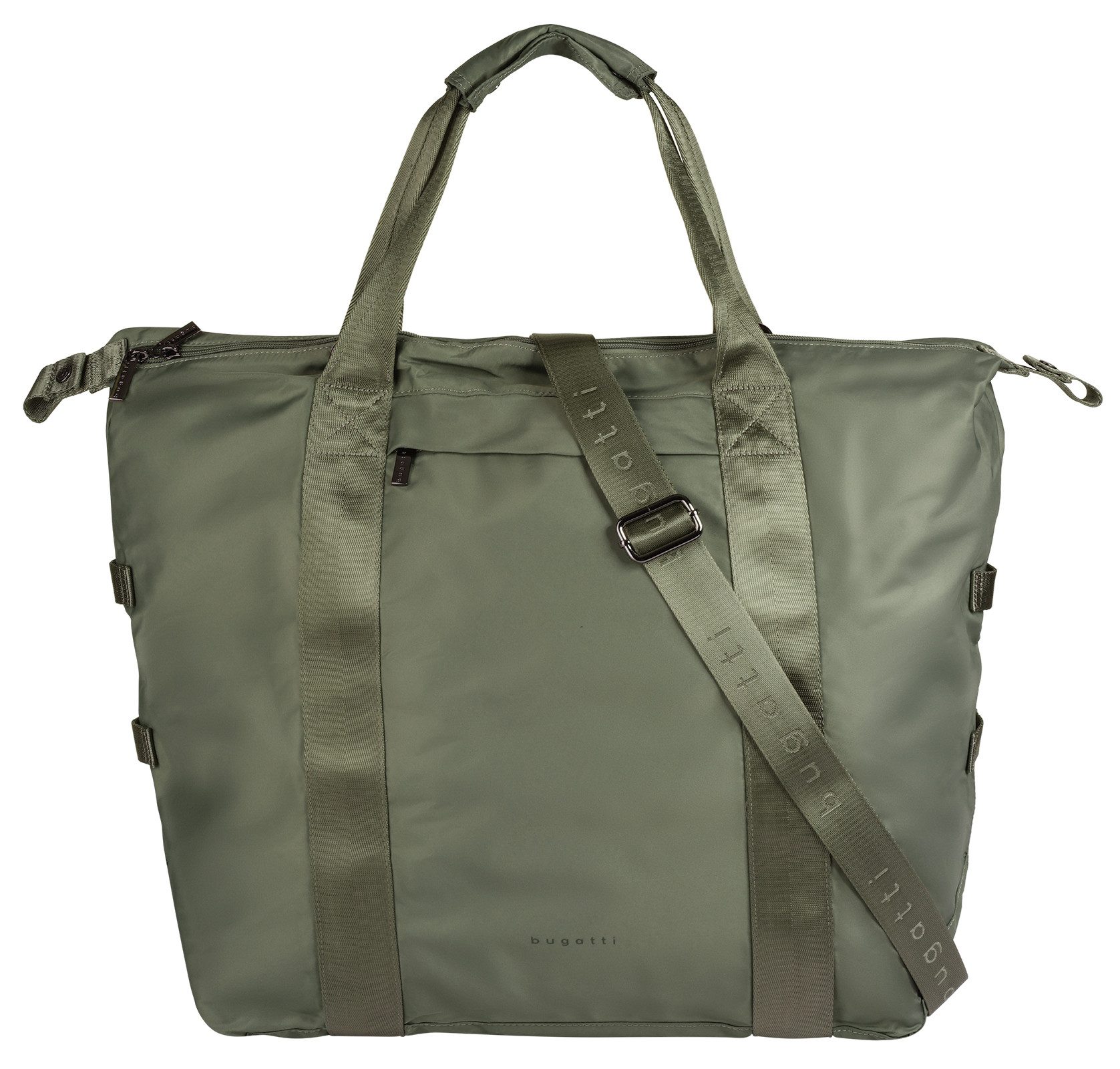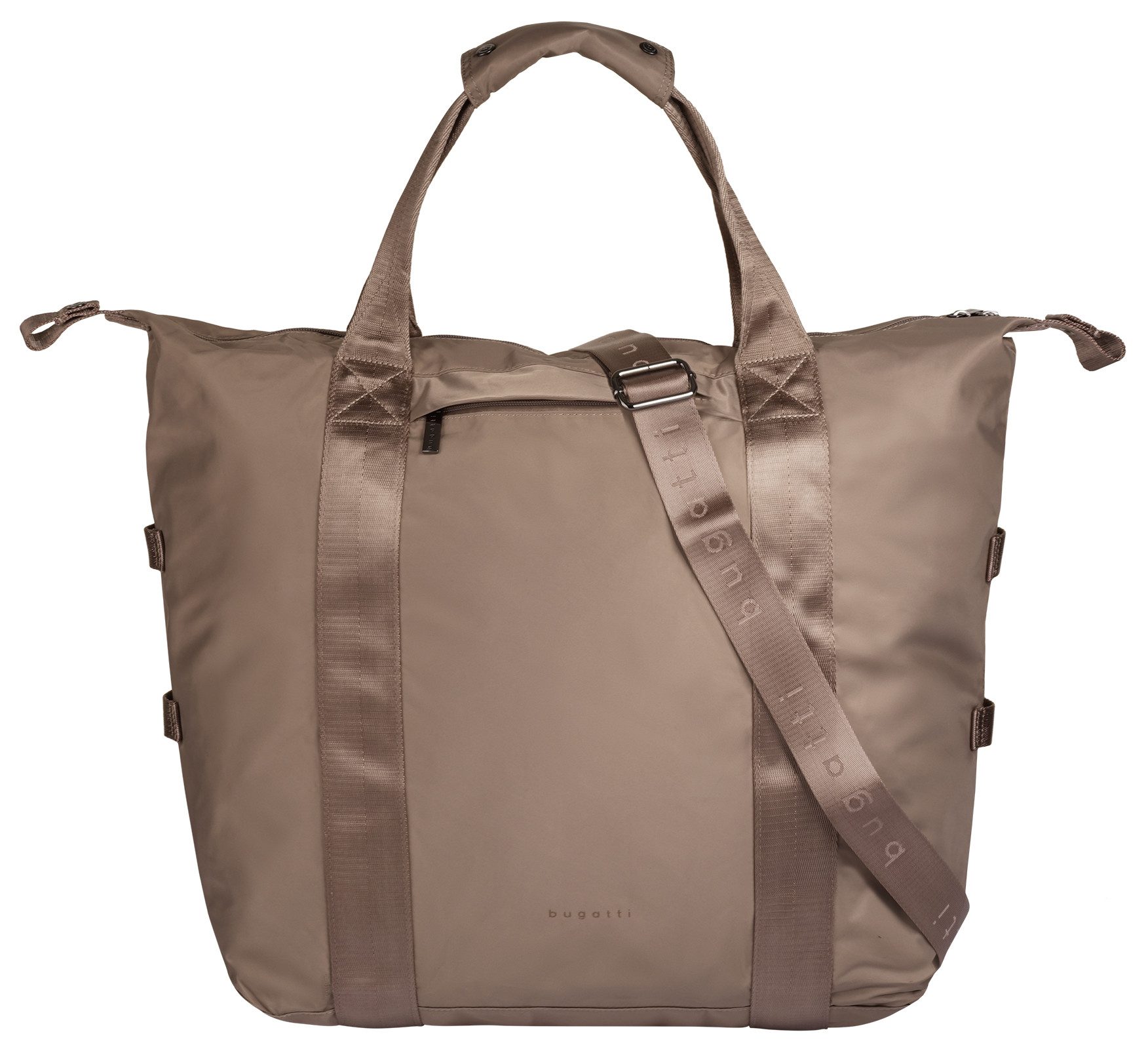 Ein Shopper aus dem Hause bugatti, der seinem Namen alle Ehre macht! Mit seinem geringen Gewicht und pflegeleichten Material ist er der perfekte Gefährte für kleine und große Abenteuer. Das geräumige Hauptfach trägt alles von der Ausbeute des spontanen Shoppingtrips bis hin zum Wocheneinkauf. Sogar als Reisetasche kann er verwendet werden! Dabei bieten sich verschieden große Einsteckmöglichkeiten ideal zur Aufbewahrung von wichtigen Gegenständen an. So sind Ihre Essentials auch bei einer gut gefüllten Tasche stets nur einen Griff entfernt. Ein verstellbarer Schultergurt ergänzt die Ausstattung. Benutzen Sie Ihren Shopper mal nicht, lässt er sich platzsparend in der Reißverschlusstasche verstauen. Geheimtipp: sie eignet sich ansonsten ausgezeichnet als Kosmetiktasche!