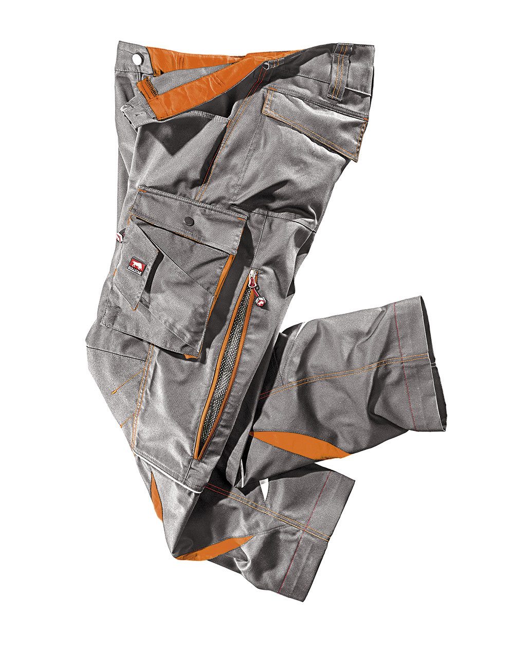 Die moderne, hochfunktionelle Arbeitshose besticht durch die trendig, auffallende Farbkombination. Mit den vielen Taschen wie Zollstock- und Messertasche, großer Cargotasche mit Handy- und Reißverschluss-Tasche, 2 Gesäßtaschen, 2 Schubtaschen und einer Safety-Tasche mit Reißverschluss bietet die Hose viel Stauraum. Einen besonderen Tragekomfort bringt der Easy-Air-Reißverschluss sowie auch der Easy-More-Dehnbund, der hinten hochgezogen ist. Mit Hilfe der Easy-Long Bein-Verlängerung kann die Hose schnell und einfach um ca. 4 cm verlängert werden. Zur besseren Sichtbarkeit sind Reflexelemente eingearbeitet. Zusätzlich ist ein Bullstar-Karabinerhaken an der Hose befestigt.
