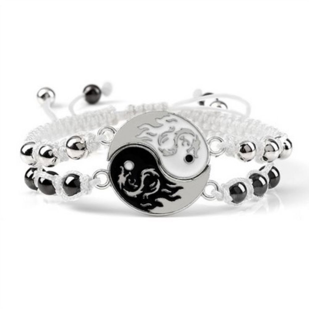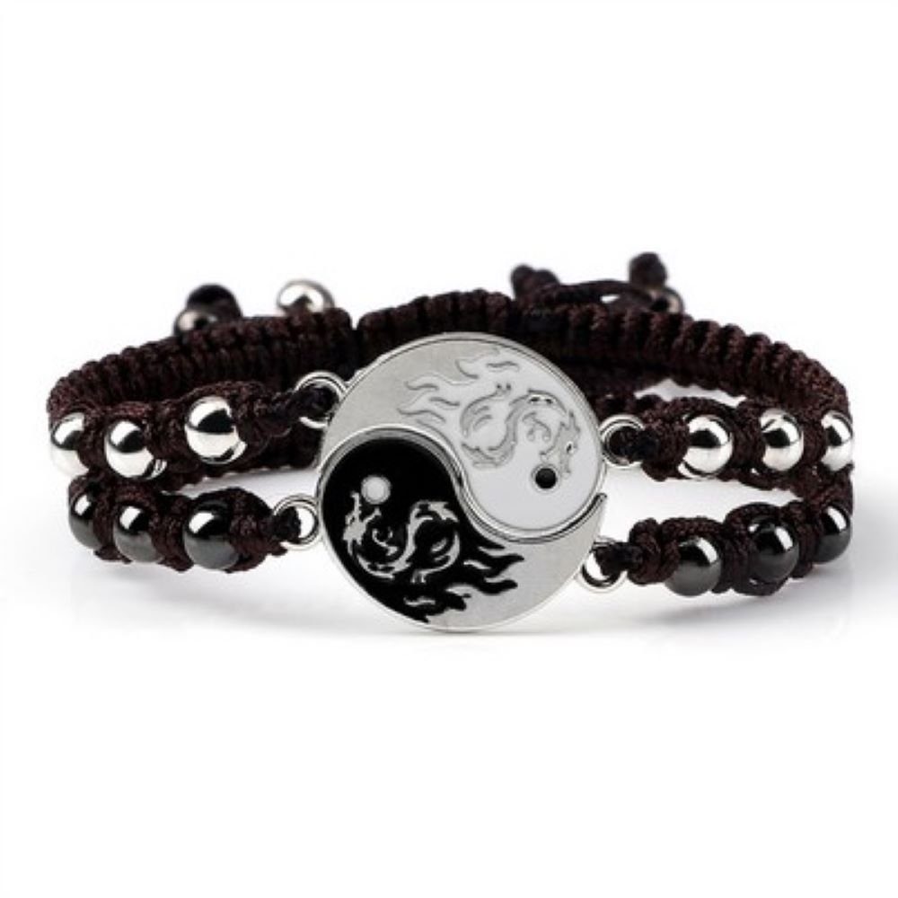 Doppel-Armband Yin Yang aus Nylon und Metall mit Bindeknoten für Damen und Herren