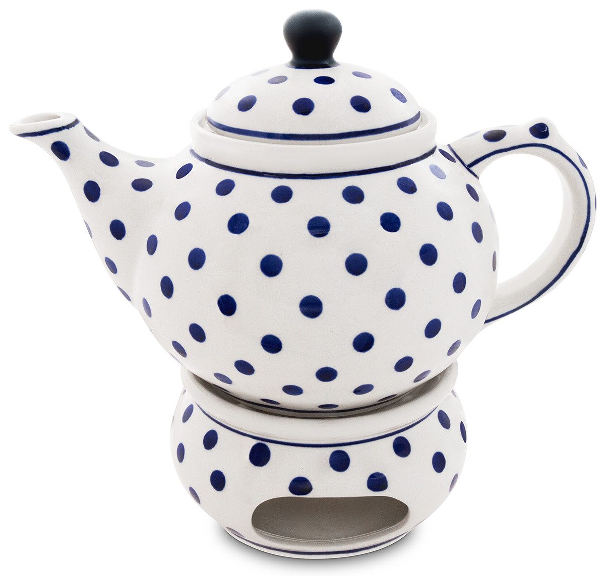 Bunzlauer Keramik Teekanne 1,25 Liter Teekanne mit Stövchen – Klassische, rundliche Form,Dekor 37, 1,25 l
