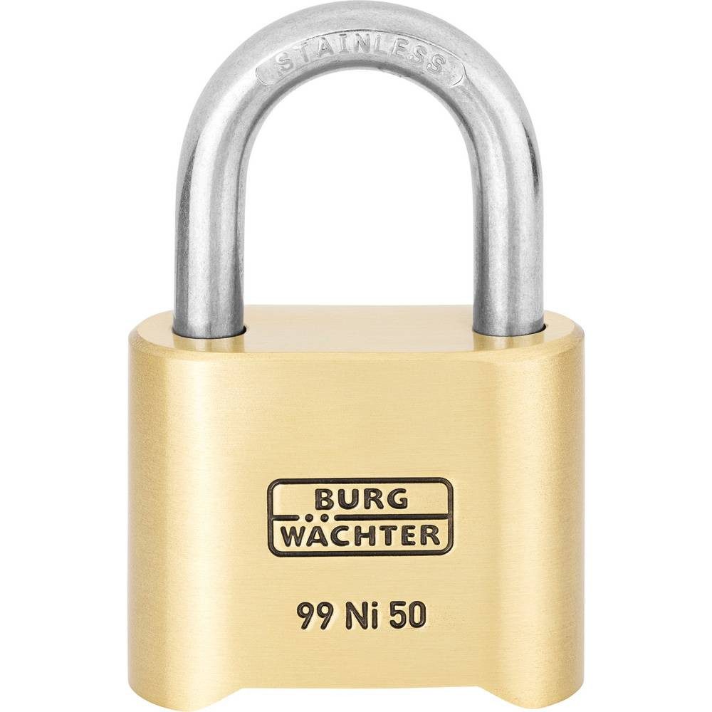 | Lieferumfang | 1 BURG-WÄCHTER verstellbares Zahlen-Vorhängeschloss No. 99 Ni 50 SB, 1 Schlüssel |