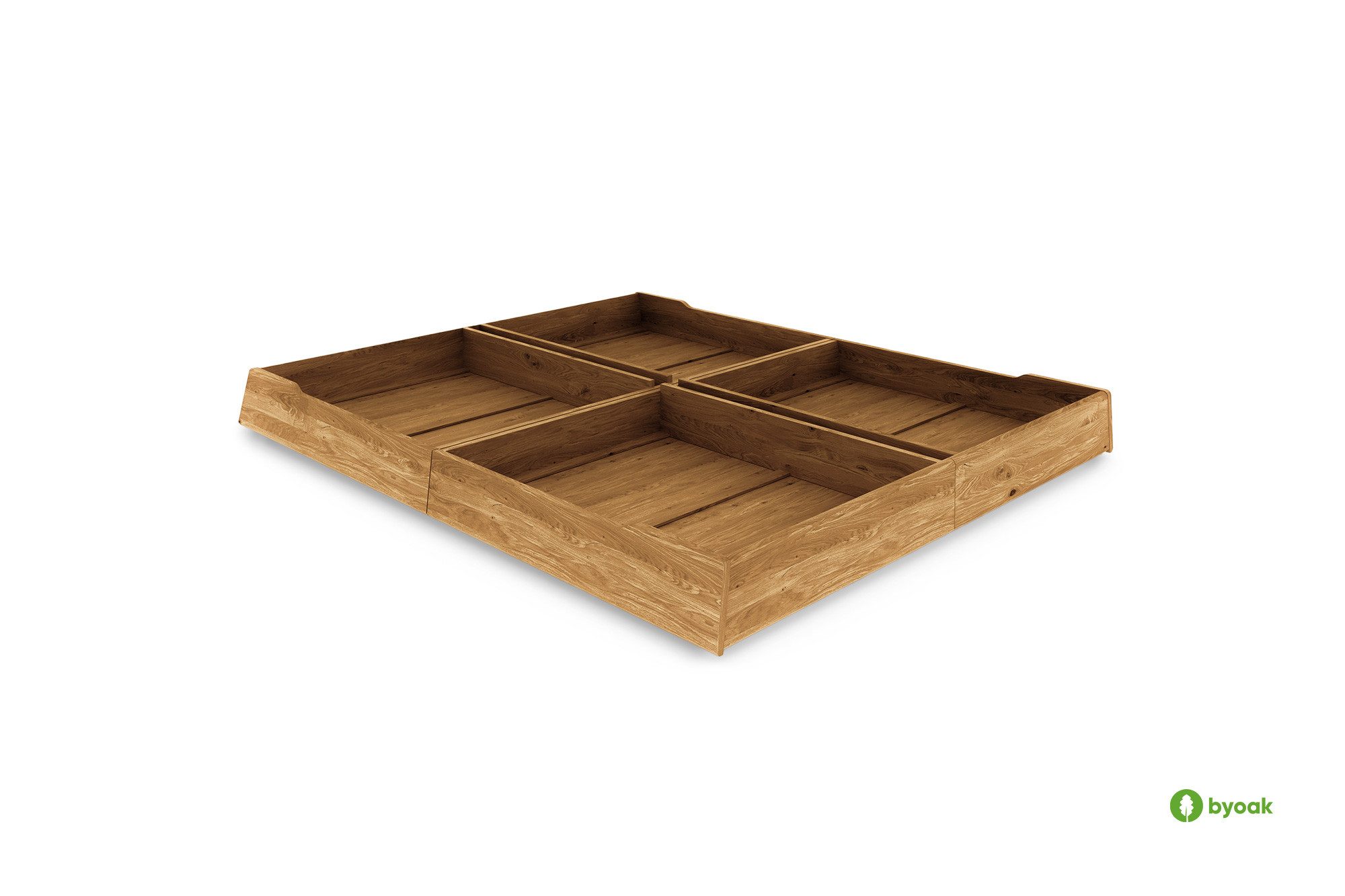 4 Bettschubkasten TWIG - Die perfekte Ergänzung für Ihr Bett Bett TWIG Suchen Sie nach einer funktionalen und stilvollen Möglichkeit, den Platz in Ihrem Schlafzimmer zu optimieren? Die TWIG-Bettschubladen sind die perfekte Lösung! Dadurch gewinnen Sie zusätzlichen Platz für Bettwäsche, Kleidung, Spielzeug oder andere Gegenstände und sorgen gleichzeitig für Ordnung und Ästhetik im Raum. Die TWIG-Bettschubladen wurden speziell für moderne Innenräume entwickelt und zeichnen sich durch ihr minimalistisches Design und ihre hochwertige Verarbeitung aus. Die Bettschubladen sind aus robustem Massivholz gefertigt, was Langlebigkeit und Widerstandsfähigkeit im täglichen Gebrauch garantiert. Das natürliche Material unterstreicht nicht nur ihre Eleganz, sondern ist auch umweltfreundlich. Massives Holz, sorgfältig mit Naturöl behandelt, sorgt für ein ästhetisches Erscheinungsbild und eine lange Produktlebensdauer. Die einfache Montage und die leisen Gummiräder sorgen für eine reibungslose und problemlose Nutzung der Bettschubladen, ohne dass die Gefahr besteht, dass der Boden zerkratzt wird. Die 4 TWIG-Bettschubladen sind für Betten unserer TWIG-Serie konzipiert und passen nicht für andere Bettmodelle.