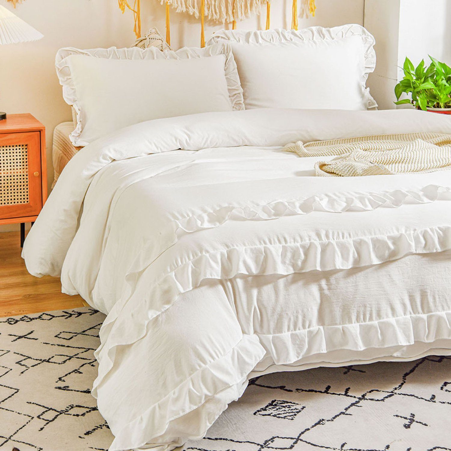 Jedes Bettwäsche-Set wird mit passenden Rüschen-Kissenbezügen geliefert: Einzelbett (1 Stück), Doppelbett (2 Stück)