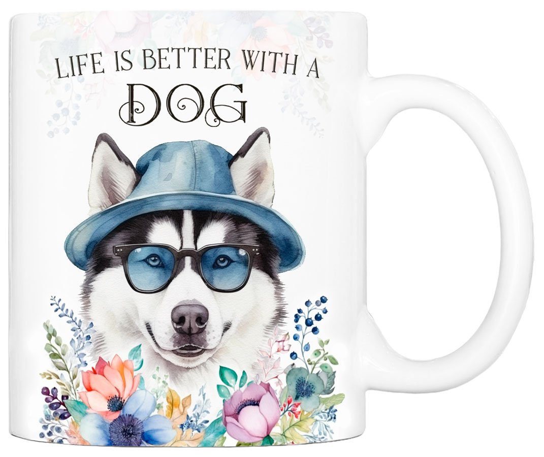 Die fröhlich bunte Tasse mit Hunderasse im Watercolor-Stil und "Life is better with a Dog" Schriftzug macht den Kaffee am Morgen und den Tee am Abend zu etwas ganz Besonderem!