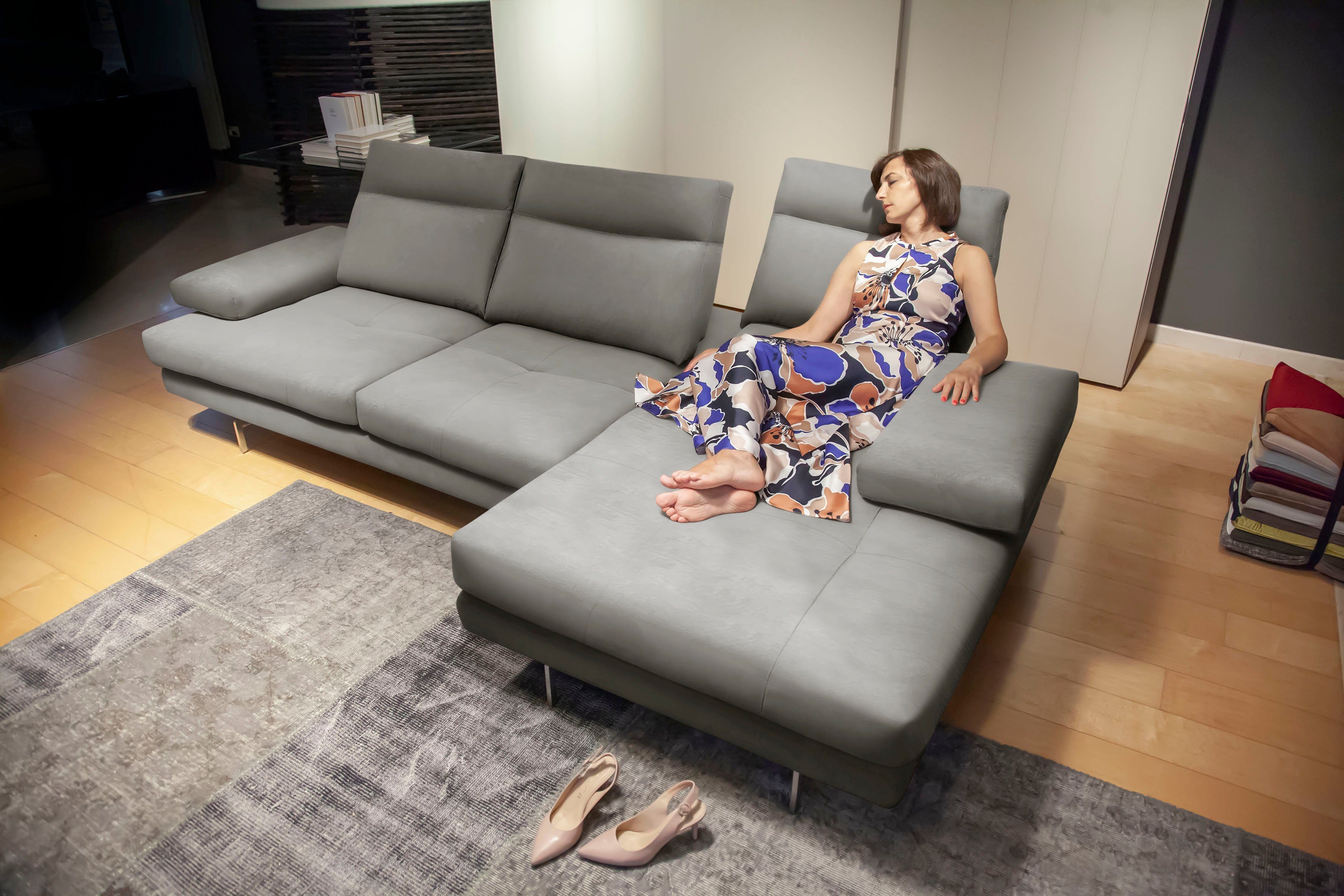 Mit diesem einladenden Ecksofa »Toby Wing, Komfortsofa der Extraklasse, bequem, L-Form« von CALIA ITALIA kannst du dich gemeinsam mit deiner Familie oder Freunden zurücklehnen und entspannen. Die Couch ist manuell verstellbar, sodass du die Ausrichtung mit einer einfachen Bewegung anpassen kannst. Beim Ecksofa befindet sich der Longchair, von vorne betrachtet, rechts. Aus Metall gefertigt sind die chromfarbenen Füße besonders widerstandsfähig und langlebig. Lass dir von unserem Montage-Team, im Rahmen des kostenlosen Aufbau- und Premiumservice, unter die Arme greifen, wenn du beim Aufbau Unterstützung brauchst. Aus Liebe zum Detail wurde dieses Modell von Hand angefertigt.