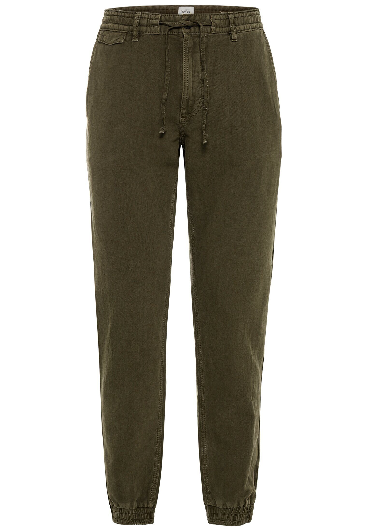 Deine neue Hose für einen absolut lässigen Sommer! Mit dieser camel active Chinohose verleihst du deinen Freizeitoutfits eine angesagte Note und fühlst dich dank des angenehm zu tragenden Materialmixes aus Baumwolle und Leinen auch bei hohen Temperaturen wohl. Verschlossen wird sie mit einem Schnürverschluss aus dem gleichen Material. Die Herren Chinohose hat nach unten schmaler werdende Beine und schließt mit einem Bündchen mit einer Fußweite von 36 cm ab. Sie ist mit zwei seitlichen Eingrifftaschen, einer Münztasche und rückwärtigen Taschen ausgestattet. Das trendige Olivgrün macht die camel active Chinohose zu einem idealen Kombipartner für einfarbige und gemusterte Shirts und Hemden.