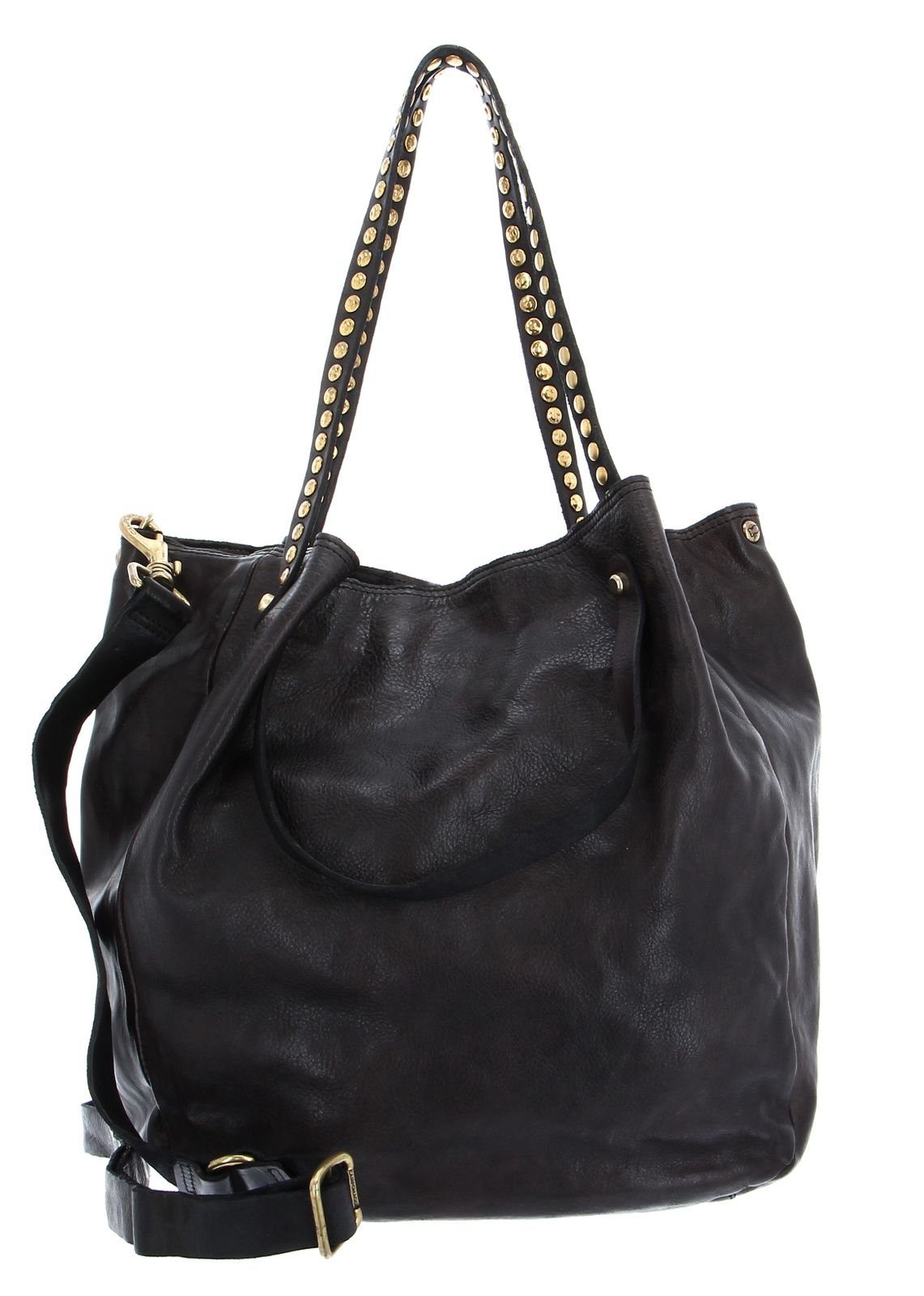 Bei dieser außergewöhnlich schönen Shopper hat sich CAMPOMAGGI richtig was einfallen lassen! Mit den modernen Nieten wertet sie jeden Look auf. Die Tasche lässt sich dank des verstellbaren Schulterriemens auch zu einer Umhängetasche umfunktionieren oder dank der Henkel lässig als Handtasche tragen. Auch Ihre Habseligkeiten finden im Innenraum Platz. Ob kleine Shoppingtou oder großer Einkaufsbummel, Ihre CAMPOMAGGI Large Shopping Bag Shopper L aus echtem Rindsleder ist immer mit dabei, und wird dank des beigefügten Lederpflegesets für lange Zeit aussehen wie neu.