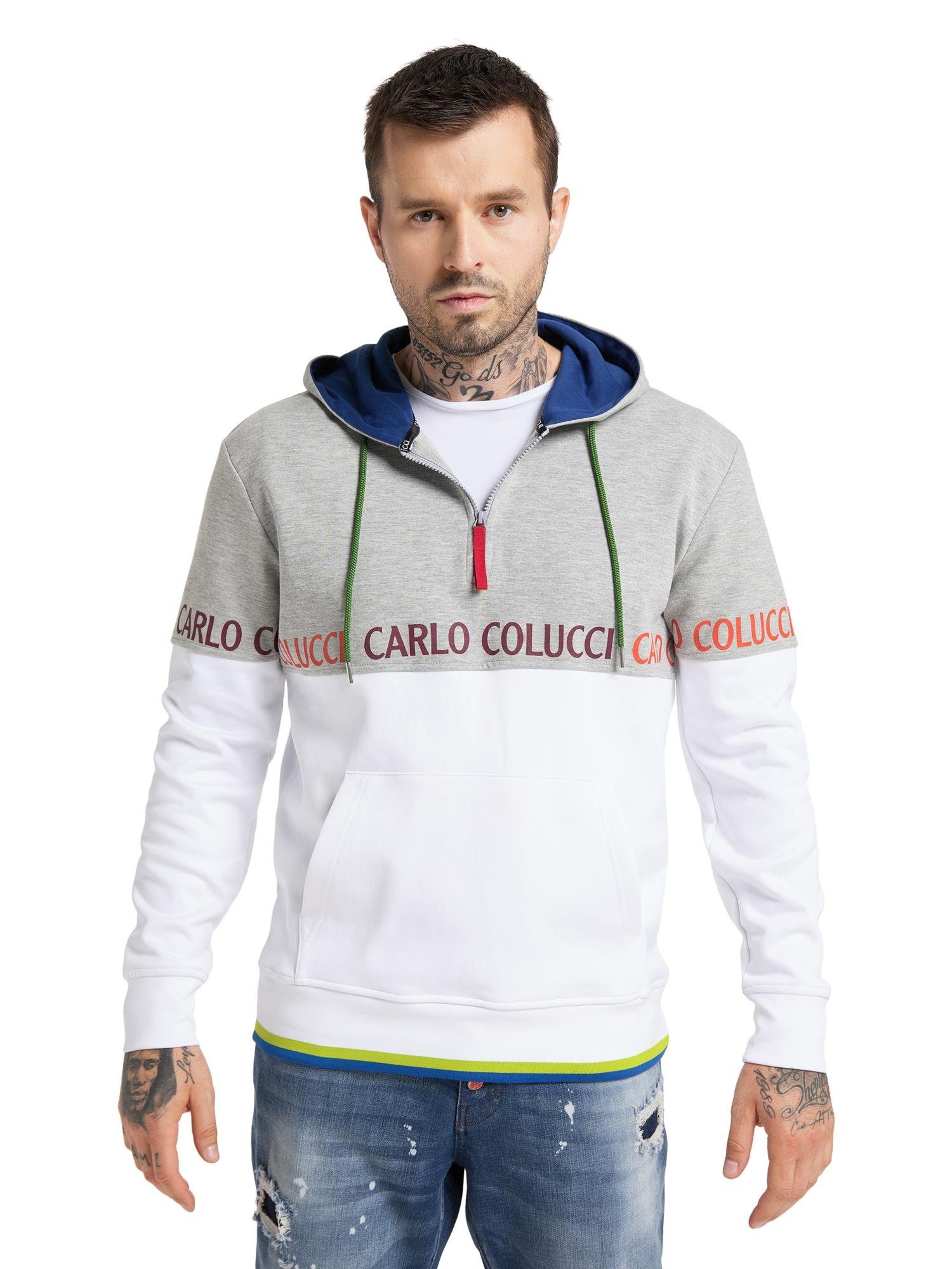 Cool und leger präsentiert sich dieser Troyer im trendigen Colourblock-Dessin. Er überzeugt zudem mit einem Logo Schriftzug, Känguruh-Tasche und einer lässigen Kapuze.