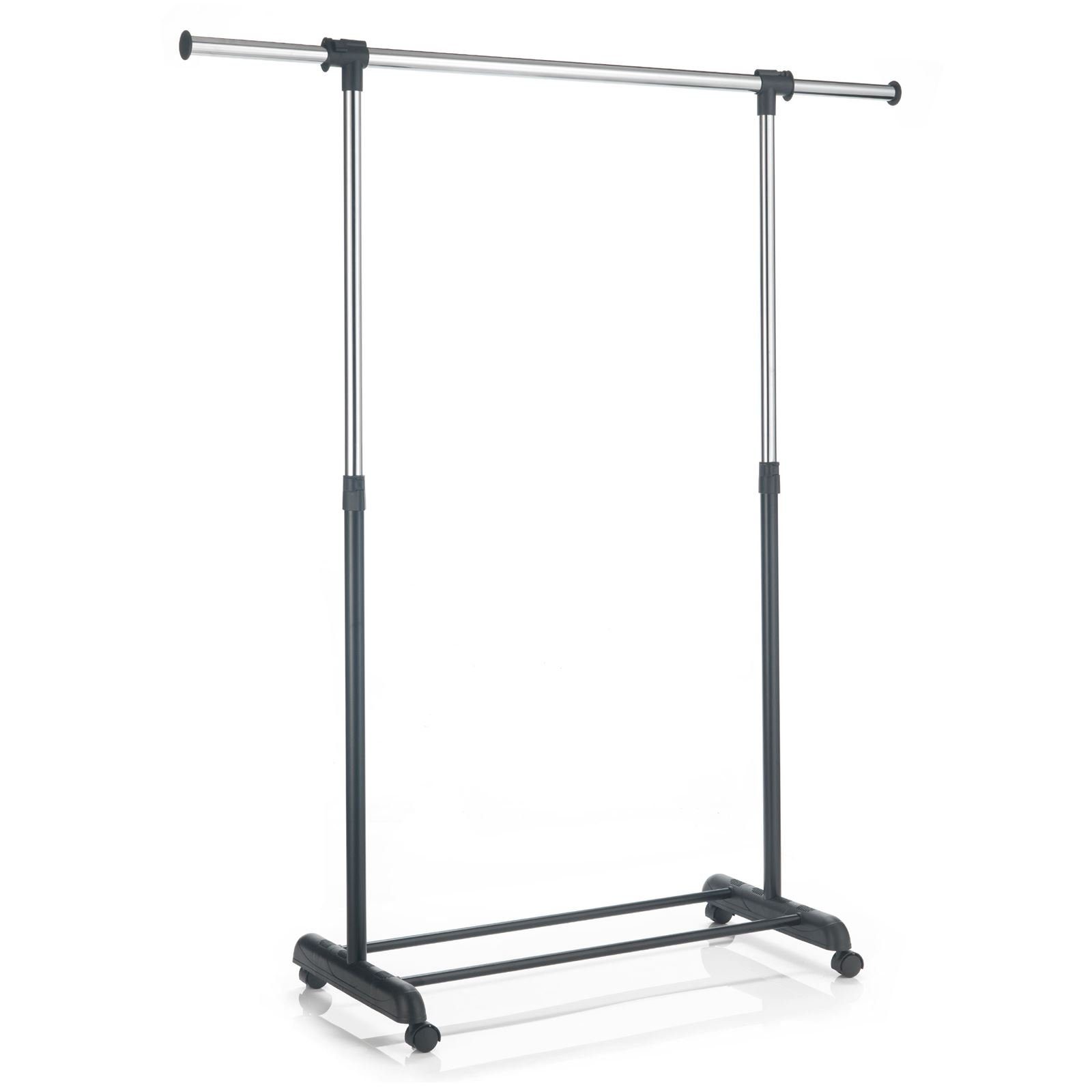 haben Sie Ihre Kleidung jederzeit griffbereit. Durch die praktische stufenlose Höhenverstellbarkeit, können Sie die Rollgarderobe Ihren Ansprüchen individuell anpassen und zugleich Ihre Kleidung trendig präsentieren. Dank der 4 Rollen ist ein problemloses Verschieben der Garderobe möglich.