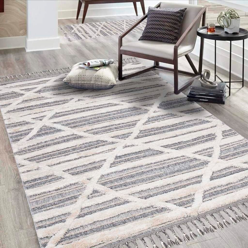rechteckig, Höhe: 20 mm, Läufer, Boho-Stil, 3D-Effekt, Raute, Hoch-Tief-Struktur, mit Fransen