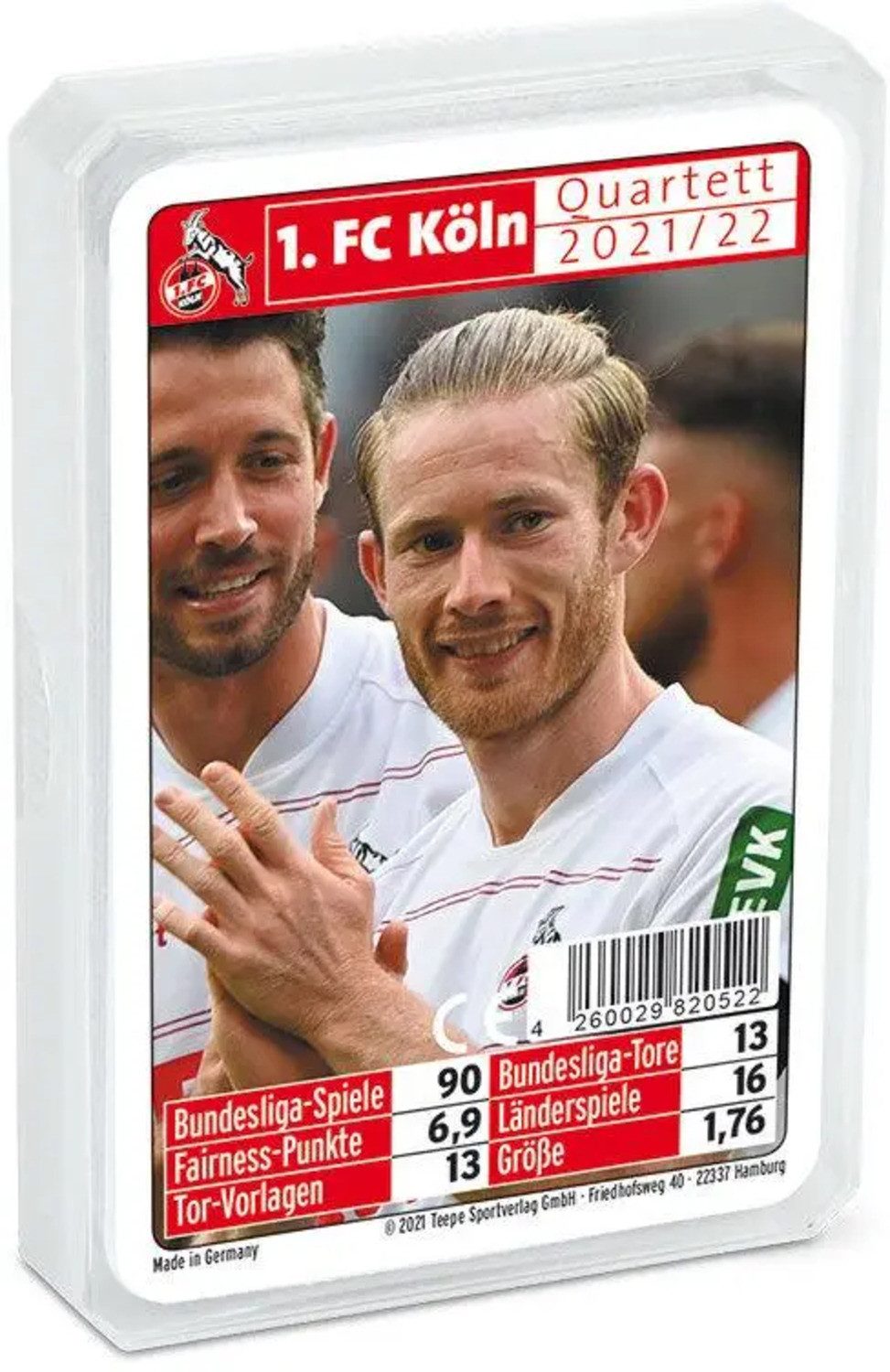 Du kannst Abseits im Schlaf erklären, ein Elfmeter lässt dich schwitzend mitfiebern und du bist ein Fan des 1. FC Köln? Dann kicke jetzt mit, mit dem Fußball-Quartett des Teepe Sportverlags. Es kann als klassisches Quartett (4 Quartettkarten gehören zusammen) oder als Trumpfspiel gespielt werden. Im Trumpfspiel vergleicht ihr die Spieler (eine Mischung aus aktuellen Spielern der Saison 2021/22 und Legenden) in sechs verschiedenen Kategorien (Anzahl der Bundesliga-Spiele, Fairness-Punkte, Tor-Vorlagen, Bundesliga-Tore, Länderspiele, Größe - Stand zu Saison-Beginn 2021/22) miteinander. Wer hat mehr Tore geschossen - Christian Clemens oder Bernhard Cullmann? Hol dir deine Mannschaft nach Hause, Schuss und TOOOOR!