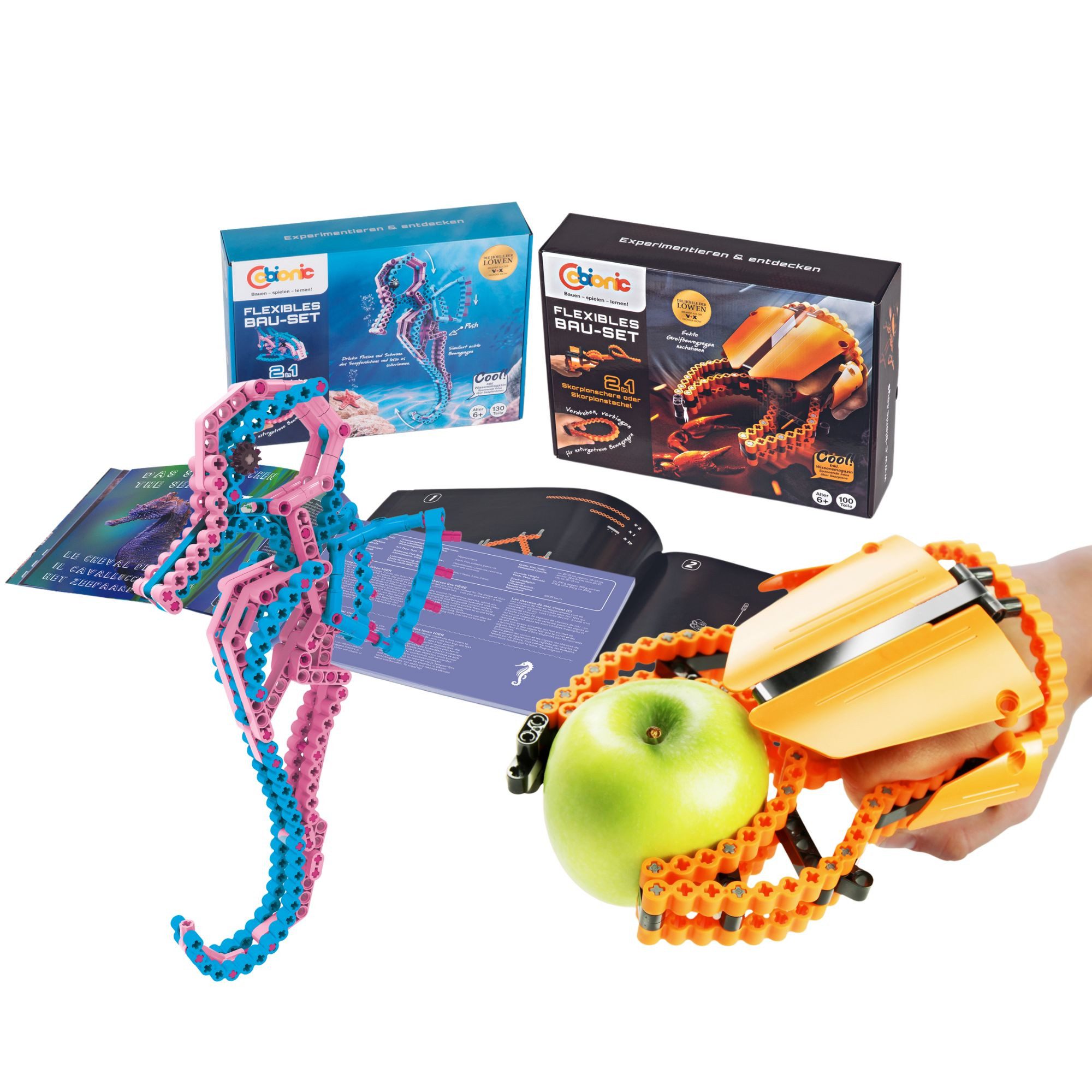 | Lieferumfang | 2-in-1-Bau-Set "Spektakuläres Wüstenleben", 2-in-1-Bau-Set "Faszinierende Unterwasserwelt", Wissensmagazin, Aufbauanleitung |