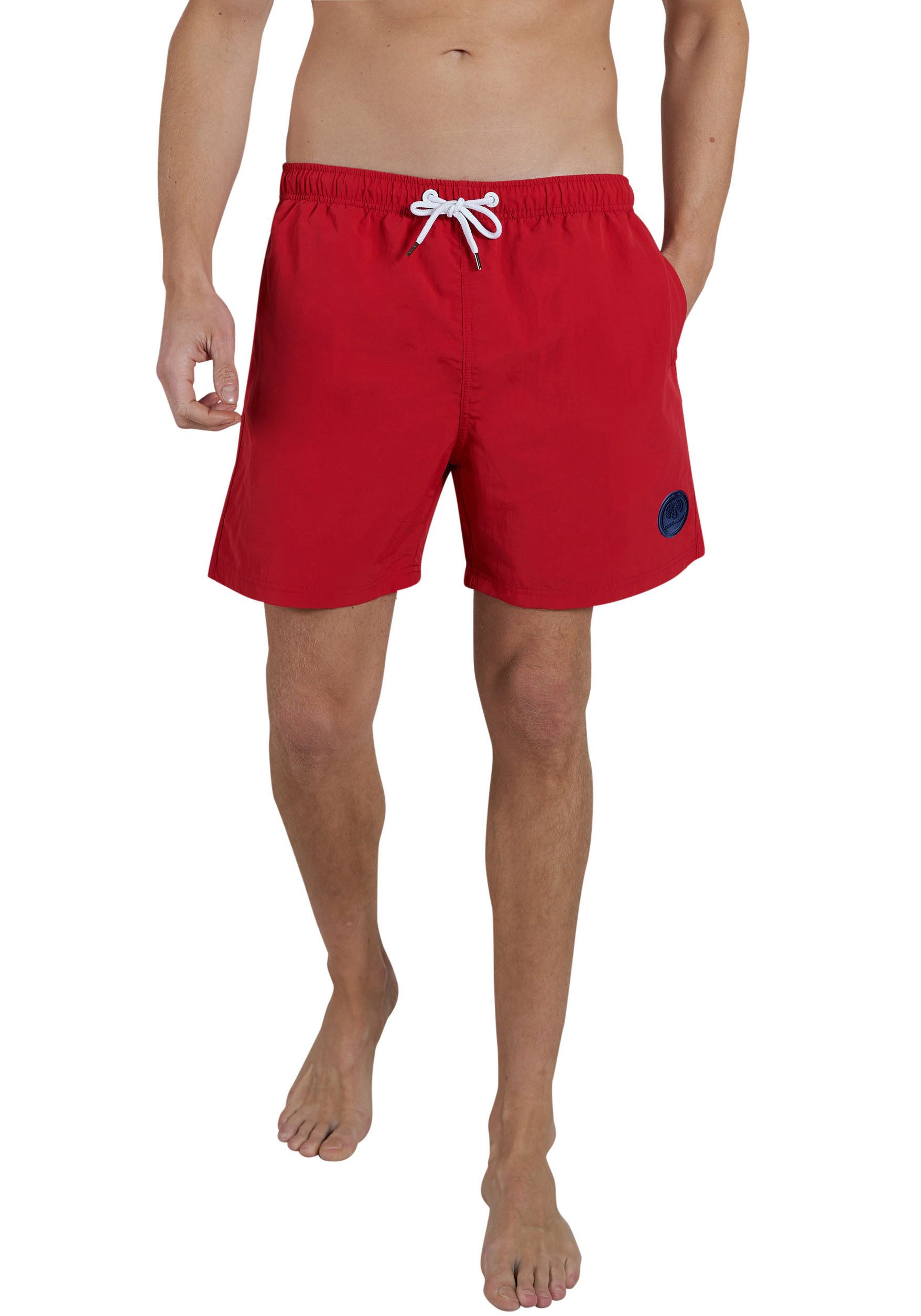 Zum modischen Hingucker im Schwimmbad und am Meer wirst du in diesen dunkelblauen Badeshorts von Ceceba, die ebenso stilvoll wie bequem sind. Die locker geschnittenen Shorts lassen sich dank des elastischen Gummibundes mit Kordelzug perfekt anpassen und sitzen anschließend zuverlässig und passgenau. Zugleich ist das recycelte Material UV-, chlor- und salzwasserbeständig, sodass du die Badehose nicht nur im Pool, sondern auch im Meer tragen kannst.
