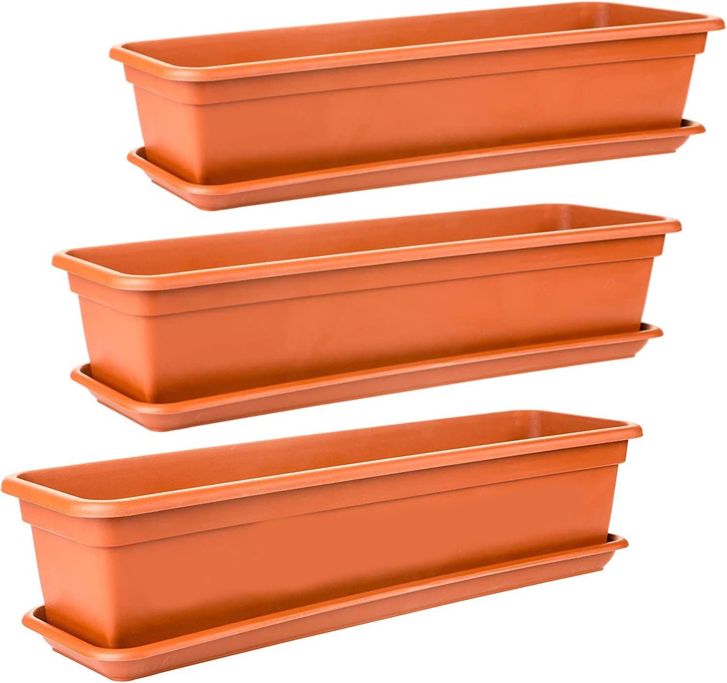 Blumenkasten Balkon 60 cm: Mit diesem geräumigen Blumenkasten können Sie Ihren Balkon oder Ihre Fensterbank in eine grüne Oase verwandeln! Der Balkonkasten ist aus hochwertigem, witterungs- und UV-beständigem Kunststoff gefertigt und bietet genügend Platz für Ihre Lieblingsblumen. Die Terracotta-Farbe verleiht Ihrem Balkon ein mediterranes Flair. Dieser Blumenkasten ist nicht nur praktisch, sondern auch ein echter Hingucker! Der Balkonkasten ist extra stabil und hat angestanzte Ablauflöcher, die je nach Bedarf durchbrochen werden können. So können Sie Ihre Pflanzen individuell anpassen und für optimale Wasserversorgung sorgen. Der klassische Balkonkasten ist in Terracotta-Farbe gehalten und passt perfekt auf jede Fensterbank oder Balkon. Blumenkasten Fensterbank außen: Machen Sie Ihre Fensterbank zum Blickfang! Dieser Blumenkasten ist ideal für den Einsatz auf der Fensterbank im Freien geeignet. Der hochwertige Kunststoff (PP) ist witterungs- und UV-beständig und extra stabil. Die angestanzten Ablauflöcher ermöglichen eine individuelle Anpassung der Wasserversorgung für Ihre Pflanzen. Blumenkästen Balkon: Verwandeln Sie Ihren Balkon in eine grüne Oase! Diese Blumenkästen sind aus hochwertigem Kunststoff gefertigt und extra stabil. Mit einer Breite von 60cm bieten sie genügend Platz für Ihre Lieblingsblumen. Die angestanzten Ablauflöcher ermöglichen eine individuelle Anpassung der Wasserversorgung und sorgen für gesunde Pflanzen. Balkon Blumenkasten: Mit diesem klassischen Blumenkasten wird Ihr Balkon zum Hingucker! Der Balkonkasten ist aus hochwertigem, witterungs-beständigem Kunststoff gefertigt und extra stabil. Der Balkonkasten ist ideal für Balkone jeder Größe und mit einer Breite von 60 cm (oben außen), einer Höhe von 14 cm und einer Tiefe von 17 cm (oben außen) ist auch für kleinere Fenster geeignet.