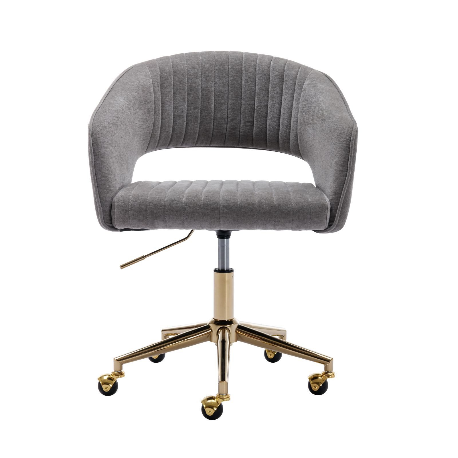 Dieser elegante Bürostuhl besticht durch modernes, gestepptes Design und einen schicken Goldfuß. Der hautfreundliche Chenille-Stoff vereint Langlebigkeit mit edler Optik. Praktisch höhenverstellbar und mit 5 Leichtlaufrollen ausgestattet, passt er sich flexibel jedem Arbeitsbereich an. Ideal für Büro, Homeoffice oder sogar als Schminkstuhl – ein stilvolles und funktionales Geschenk!
