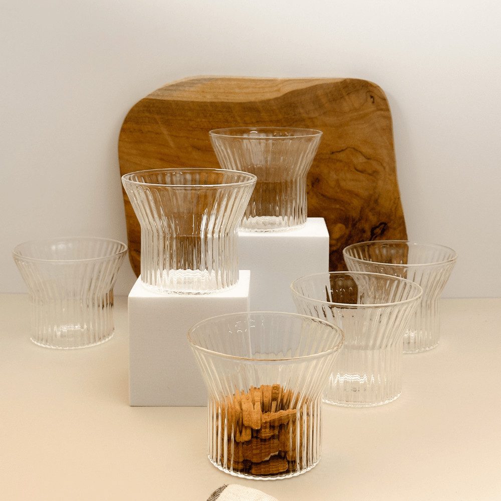 6 stapelbare Eisschalen aus Borosilikatglas, handgefertigt, spülmaschinengeeignet.