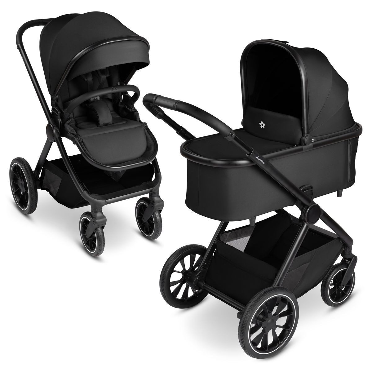 | Lieferumfang | leichtes Aluminium Gestell mit Luftkammerrädern faltbare Babywanne (Tragewanne) ergonomische CozyCloud Kinderwagen Matratze Sportwagenaufsatz Kinderwagen Organizer mit Zusatztasche Schutzbügel Einkaufskorb |