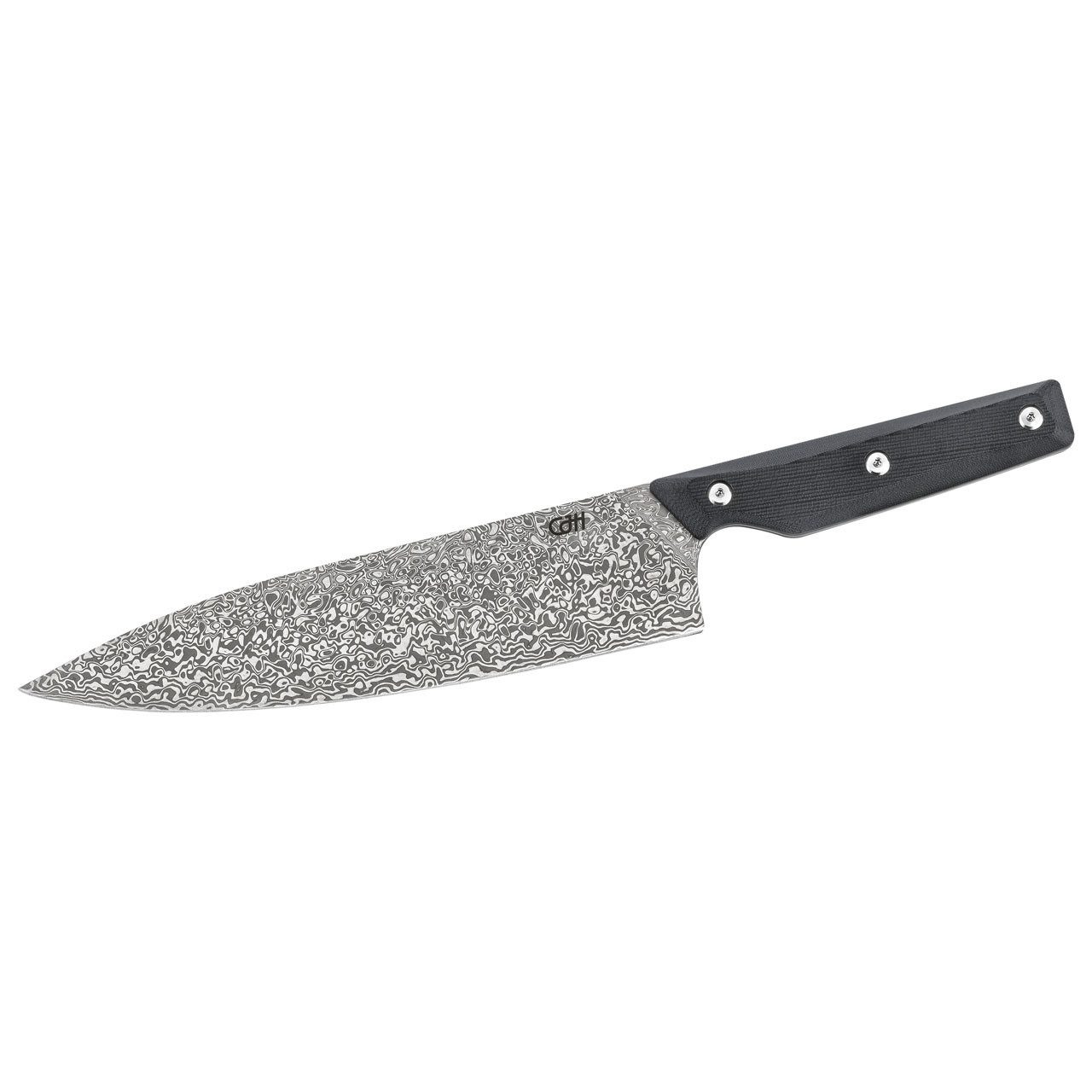 Entdecken Sie das CJH Kochmesser, ein wahres Meisterwerk aus 110 Lagen Damast Stahl. Mit einer Gesamtlänge von 34 cm und einer beeindruckenden Klingenlänge von 21,5 cm, ist dieses Messer perfekt ausbalanciert und liegt dank des 12,5 cm langen G10 Griffs ideal in der Hand. Ob Sie frische Kräuter hacken oder feine Scheiben schneiden – das feststehende CJH Kochmesser macht jede Küchenarbeit zum Vergnügen. Trotz seiner robusten Bauweise wiegt es nur 232 g und wird in einer eleganten Verpackung geliefert, die das Gesamtgewicht auf 458 g bringt. Perfekt für den anspruchsvollen Koch und ein Muss in jeder Küche, die Wert auf Qualität legt.
