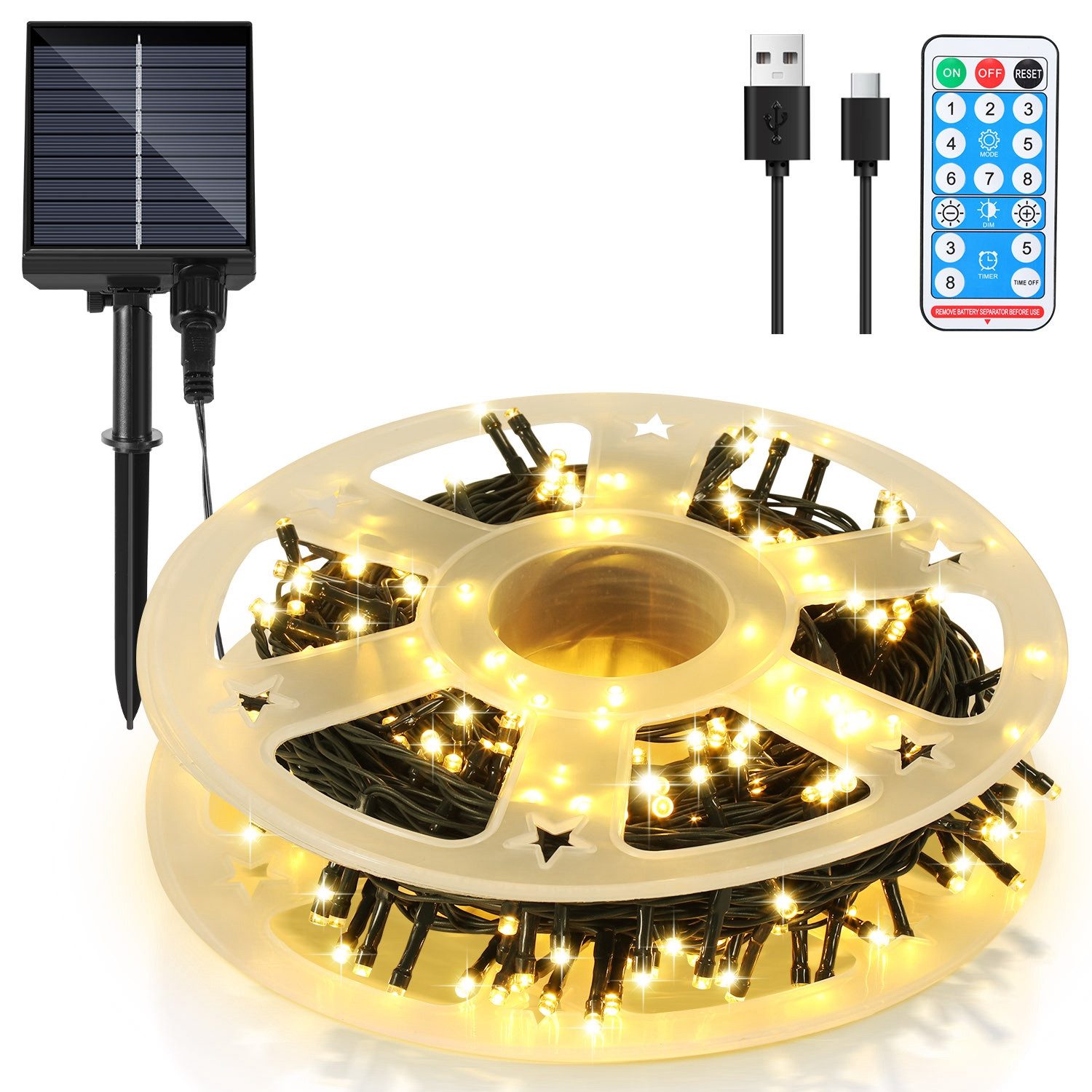 Praktische Solar LichterketteUnsere Solar Lichterketten sind jetzt mit einer leistungsstarken 1200mAh wiederaufladbaren Batterie ausgestattet. Nach nur 6 Stunden voller Aufladung leuchten die Lichter für etwa 8-10 Stunden. Dank der dualen Ladefunktion (Solar- und USB-Laden) sind die Lichter auch an bewölkten Tagen zuverlässig: Wenn die Sonnenenergie nicht ausreicht, können Sie die Lichter per USB aufladen.