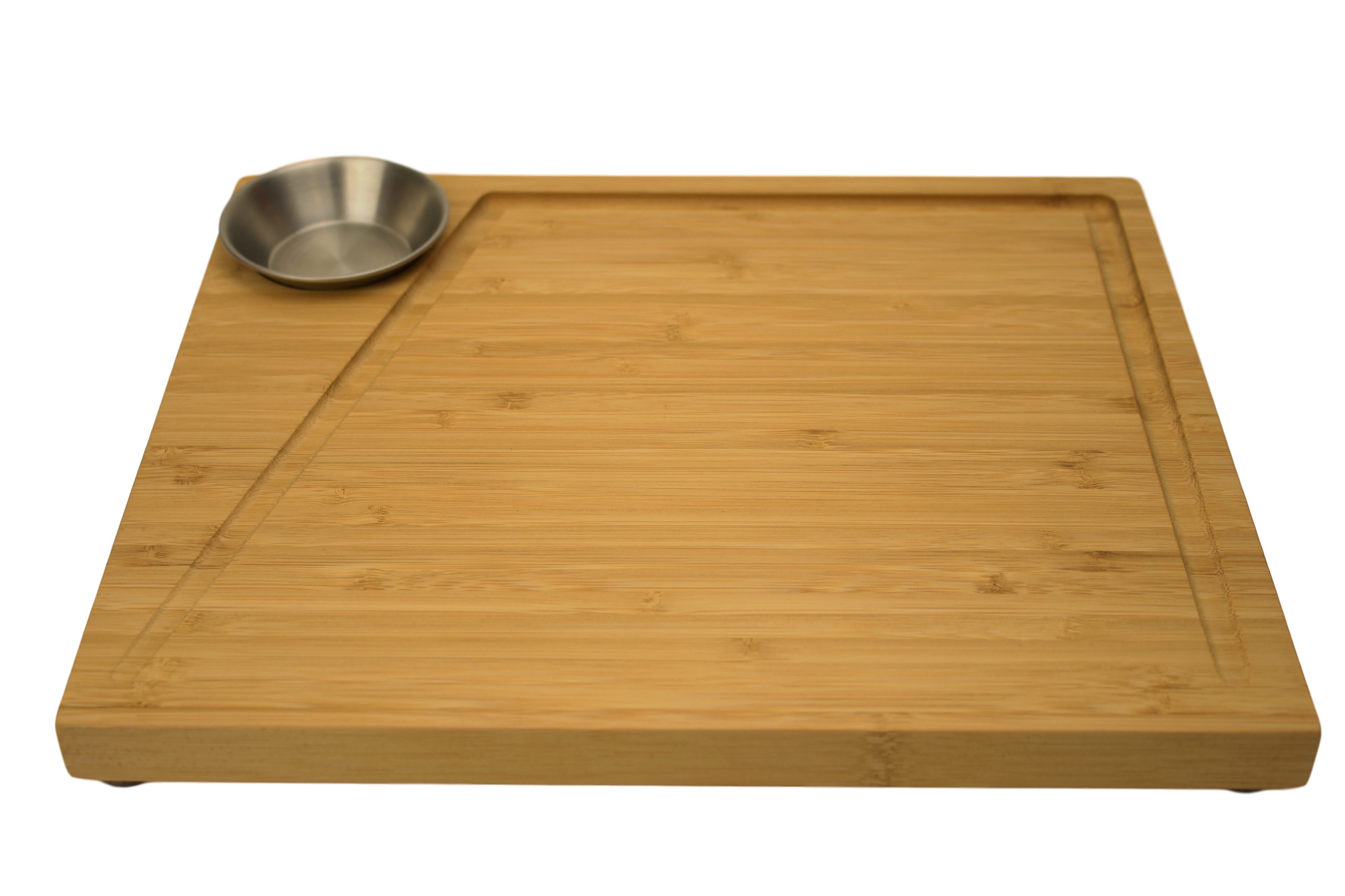 Das Grillbrett eignet sich ideal zum Vorbereiten, Schneiden oder Servieren von Grillgut und Fleisch. Dank der umlaufenden Saftrille ist auslaufender Fleischsaft kein Problem. Geniesse nicht nur Dein saftig gegrilltes oder gebratenes Steak, sondern auch Gemüse oder andere Leckereien auf dem stylischen Steakbrett. Nutz die praktische Edelstahlschale für Deine Lieblingssauce, Ketchup oder anderes. Damit Du lange Freude an deinem Bambusbrett hast: Nach Gebrauch mit lauwarmem Wasser und ein wenig Spülmittel abwaschen und abtrocknen.