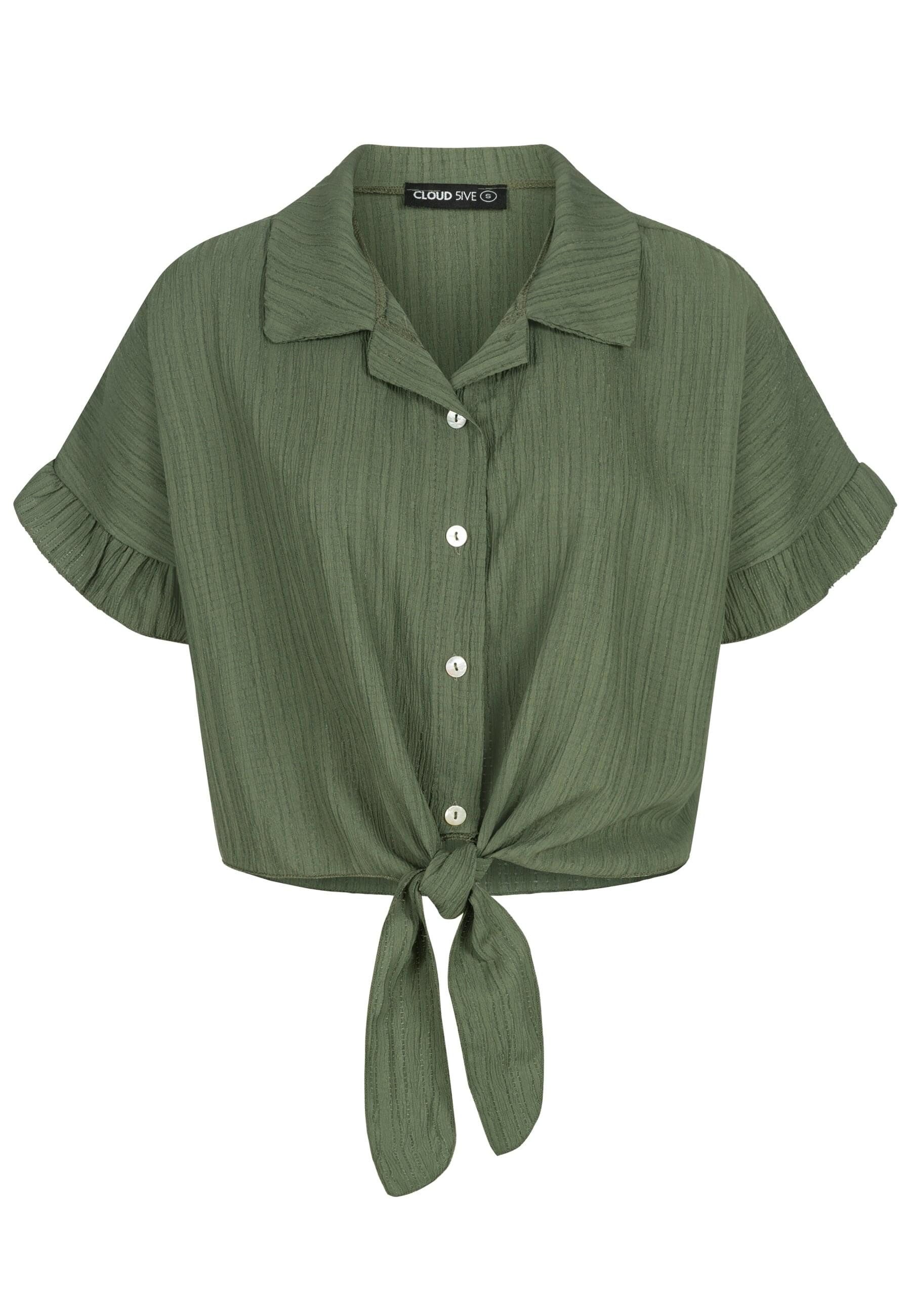 Bluse in kurz geschnittener Ausführung, ideal als lässige Sommer- oder Freizeit-Ebene mit cropped length und regular fit, die sich gut zu hoch sitzenden Hosen kombinieren lässt. Die leichte, leicht dehnbare Polyester-Elasthan-Qualität sorgt für geschmeidigen Fall und angenehmen Tragekomfort, während die durchgehende Knopfleiste von rechts nach links praktisches Schließen ermöglicht. Der schlichte Schalkragen trifft auf kurze, eingesetzte Ärmel mit leicht gerafftem Saum, das Vorderteil endet in einem Knoten, der Silhouette und Taille betont. Vielseitig einsetzbar und unkompliziert in der Pflege, eignet sich die Bluse für entspannte Alltagslooks ebenso wie für aufgepeppte Outfits.