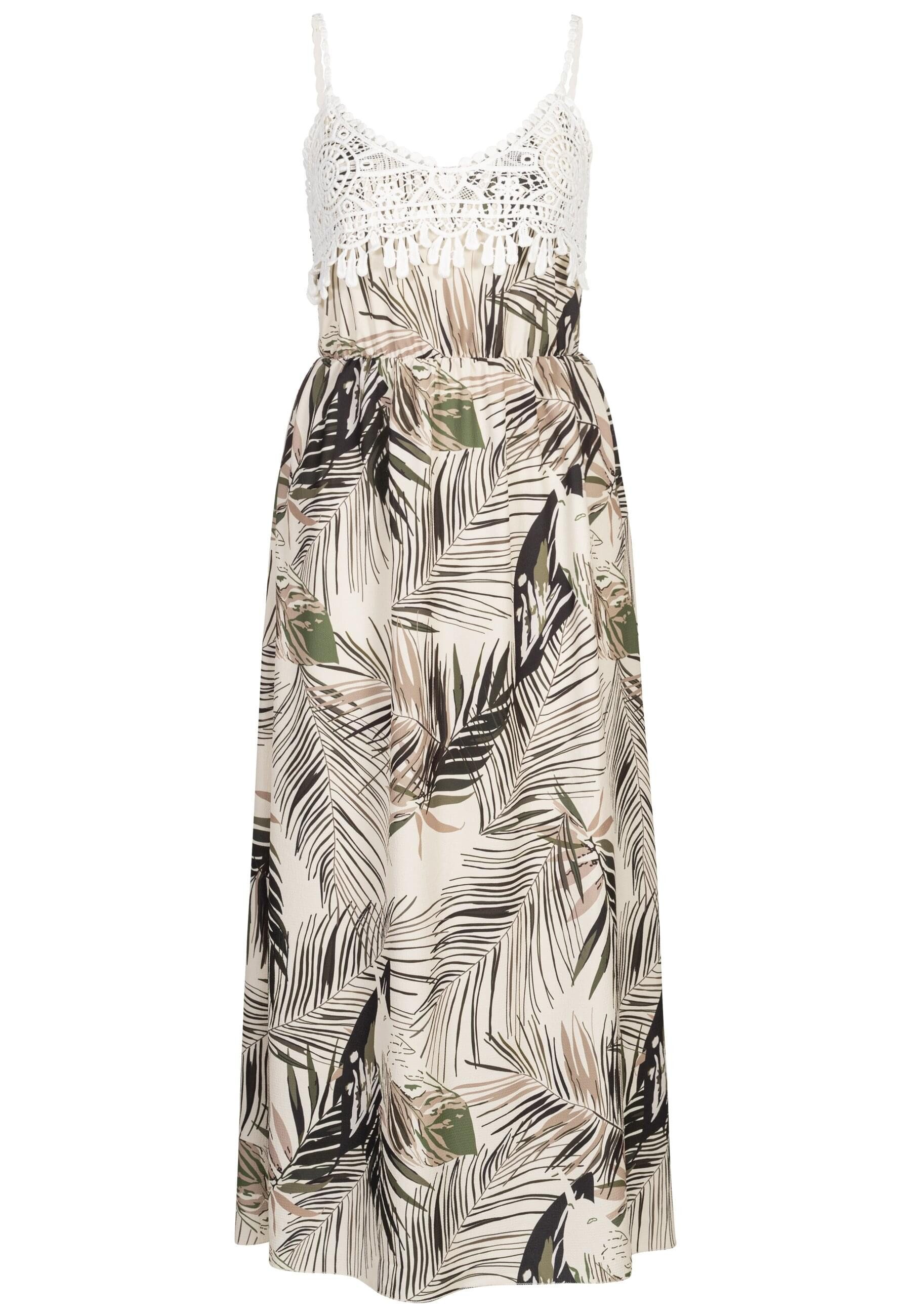 Day Dresses: Das gehäkelte Kleid mit Trägern präsentiert sich als leichte, lässig geschnittene Freizeitoption mit floralem Muster und fließendem Rockteil, ideal als entspannte Alltagslage und für sonnige Anlässe. Das Oberteil zeigt eine feine Häkelverzierung mit dekorativem Saum, während der locker fallende Schnitt Bewegungsfreiheit bietet und eine entspannte Silhouette erzeugt. Spaghettiträger und ein offen wirkender Oberbereich sorgen für einen luftigen Sitz, der Rockabschluss reicht bis zur Wade. Aus einem weichen Polyester-Mix gearbeitet, verbindet das Modell angenehme Griffigkeit mit leichter Elastizität und lässt sich unkompliziert kombinieren und tragen.
