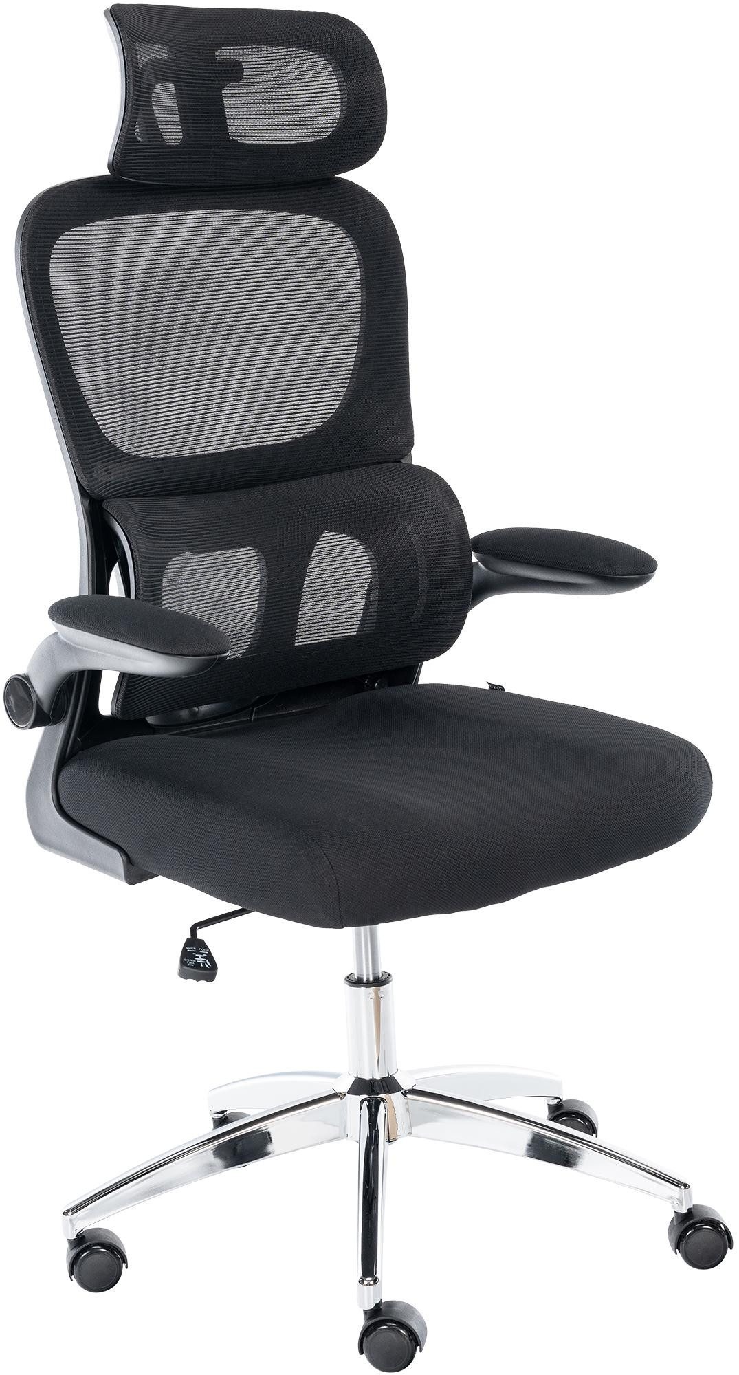 Der Bürostuhl Overton bietet ergonomischen Komfort mit einer verstellbaren Kopfstütze und Lendenwirbelstütze.
