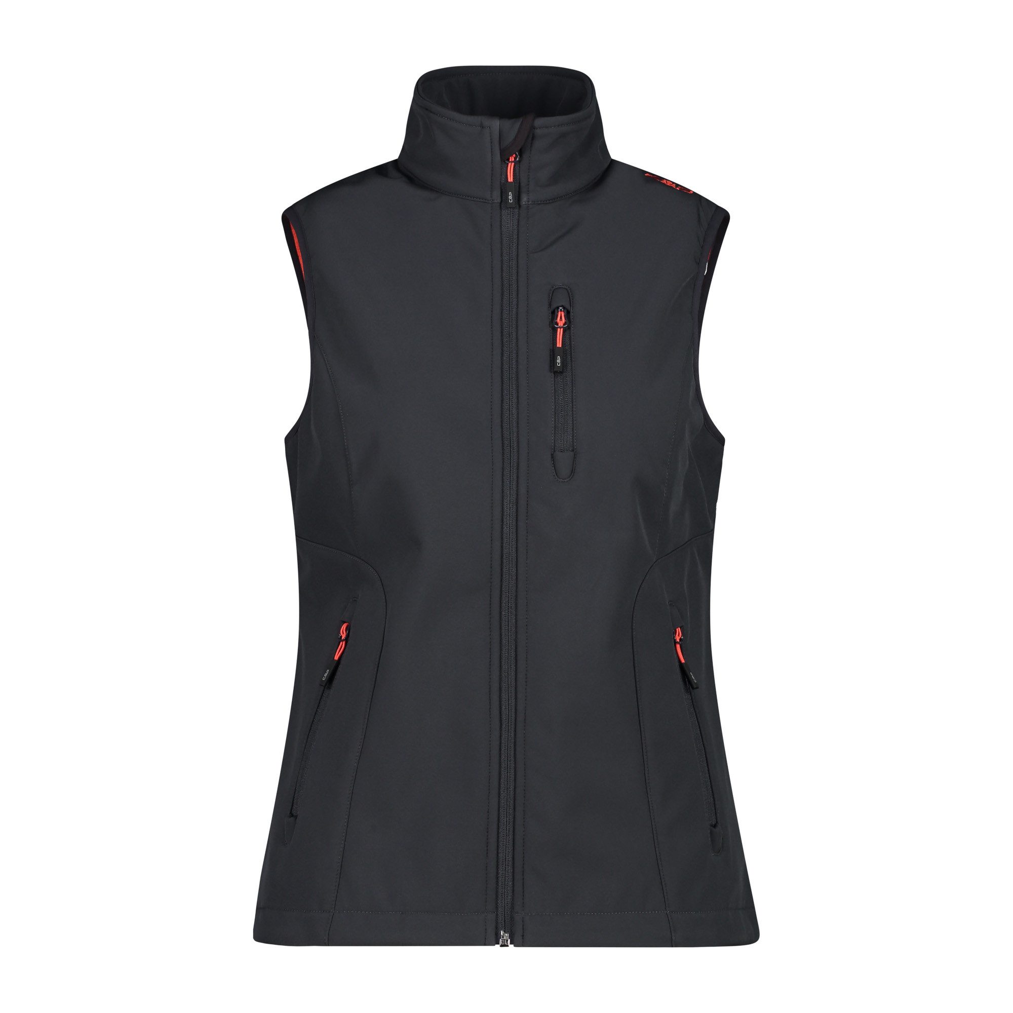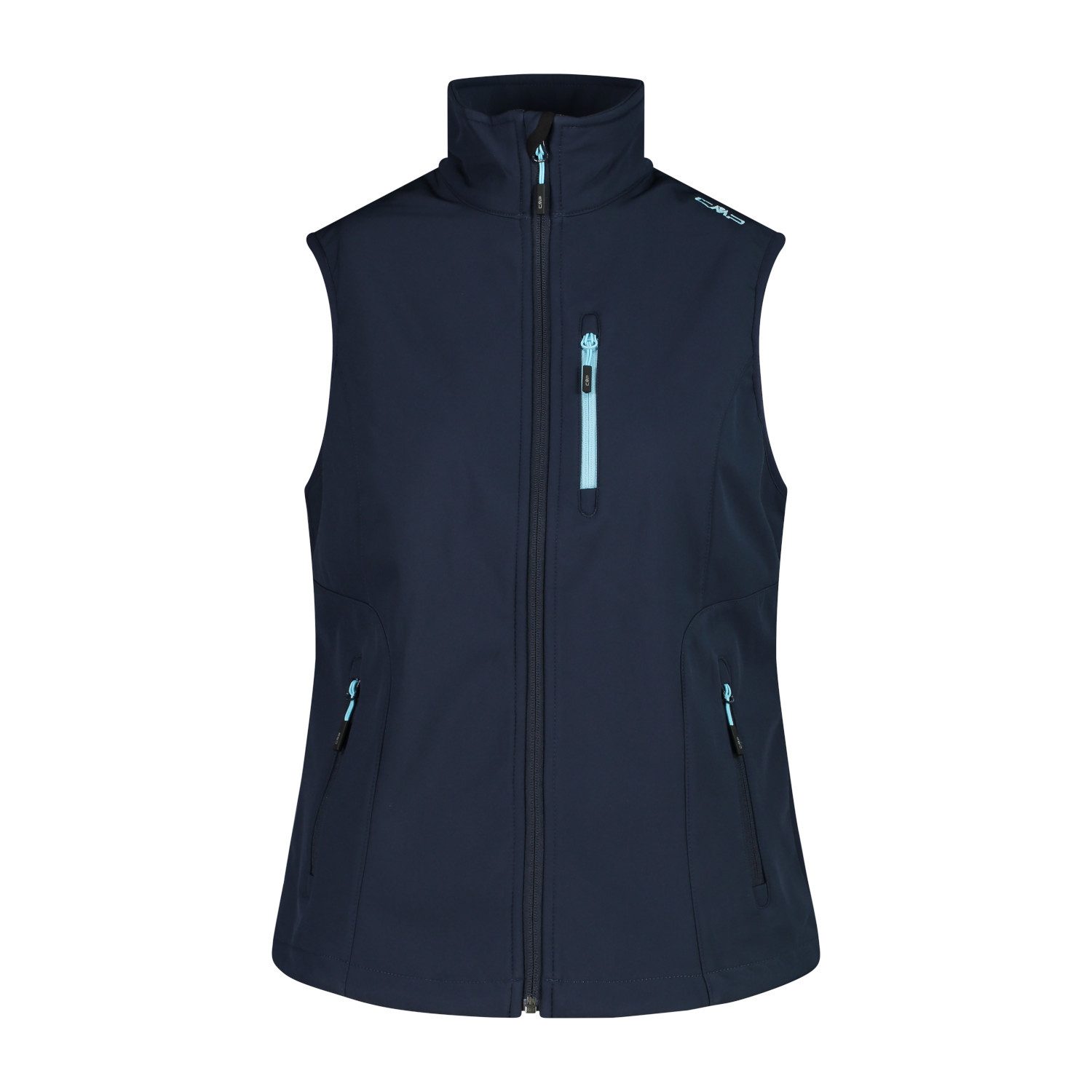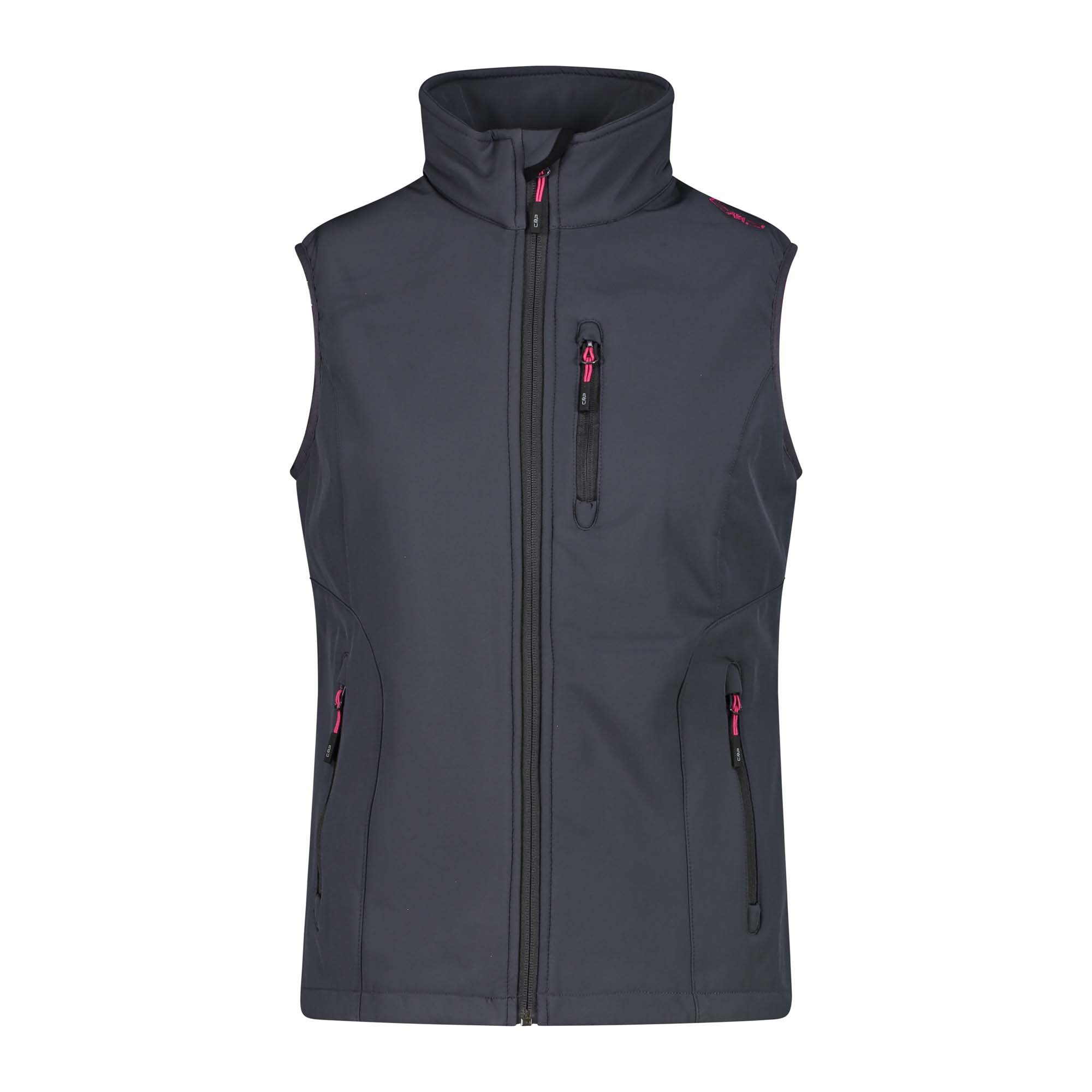 Die Westenform der klassischen Softshelljacke von CMP, ausgestattet mit allen Eigenschaften, die man sich für Outdoor-Aktivitäten nur wünschen kann. Dank der besonderen dreilagigen Struktur des Gewebes und dem mikroporösen Thermolaminat 'Clima Protect' ist sie wind- und wasserdicht (Waterproof 7000) und atmungsaktiv (MVP 1000). Die Fleecebeschichtung an der Innenseite verbessert die Wärmeisolierung und das angenehme Tragegefühl. Mit drei Taschen, zwei an den Seiten und einer auf Brusthöhe, alle mit Reißverschluss. Technologie: Clima Protect®; Water Repellent. Gewicht: 365 g. Länge: 66 cm. Material Aussenseite: 96% Polyester, 4% Elasthan. Innenseite: 100% Polyester.