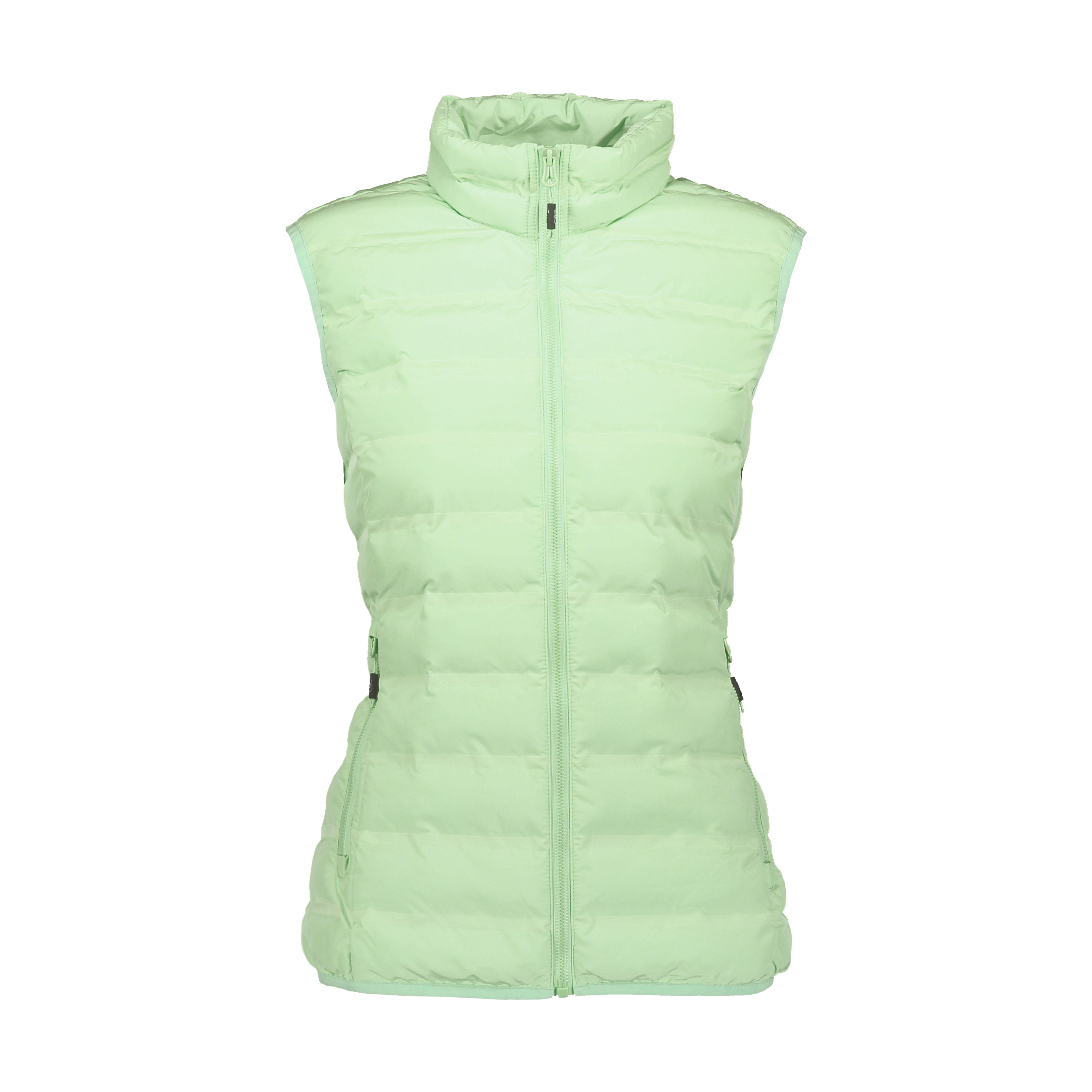 Wasserabweisende Weste aus PFC-freiem Polyester mit feet warm Seamless flock-synthetikfaserpolsterung, die für Wärme, Atmungsaktivität und Wasserfestigkeit sorgt. Die spezielle nahtlose Konstruktion begrenzt Das Verschütten von Fasern. Die Weste, Ideal für den täglichen Gebrauch oder für das Wandern im Freien, hat eine durchgehende Reißverschluss Öffnung und zwei seitliche Reißverschlusstaschen.